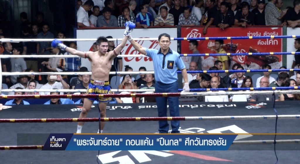 ในศึกวันทรงชัยที่เวทีมวยราชดำเนิน เมื่อคืนที่ผ่านมา นัดฉลองวันเกิดครบรอบ 71 ปีของโปรโมเตอร์มหาชน ทรงชัย รัตนสุบรรณ ได้จัดชกมวยขึ้นโดยมี พระจันทร์ฉาย พีเค.แสนชัยมวยไทยยิม พบกับ ปืนกล ต.สุรัตน์ กระทั่งหมดยกสุดท้ายกรรมการชูมือ ให้พระจันทร์ฉาย พีเค.แสนชัยมวยไทยยิม เอาชนะคะแนน ปืนกล ต.สุรัตน์ พร้อมรับเงินรางวัล 2ล้านบาทไปครอง