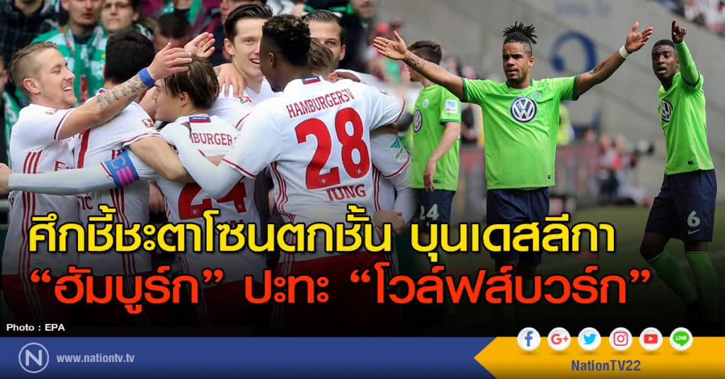 การแข่งขันฟุตบอลบุนเดสลีกา นัดสุดท้ายของฤดูกาล 2016-2017 คู่ที่น่าสนใจ ฮัมบูร์ก ทีมอันดับ 16 ของตาราง ที่ต้องชนะเท่านั้นเพื่อการันตีโอกาสอยู่รอดบนลีกสูงสุด โดยพวกเขาเหลือรอดเป็นสโมสรหนึ่งเดียวที่ยังไม่เคยตกชั้นนับตั้งแต่เปลี่ยนมาเป็น บุนเดสลีกา เมื่อฤดูกาล 1963-64 จะเปิดสนาม โฟล์คพาร์คสตาดิโอน รับการมาเยือนของ โวล์ฟส์บวร์ก ทีมอันดับ 15 ของตาราง เวลา 20.30 น.