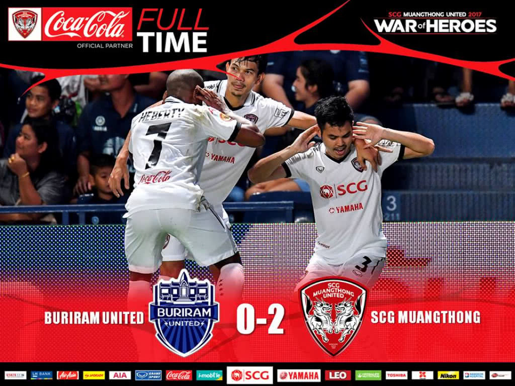 "อุ้ม" ธีราทร บุญมาทัน และเลอันโดร อัสซัมเซา ช่วยกันยิงประตูพาเมืองทองฯ บุกมาคว้าชัยเหนือบุรีรัมย์ ยูไนเต็ด 2-0 ผ่านเข้ารอบรองชนะเลิศโตโยต้า ลีกคัพ 2017