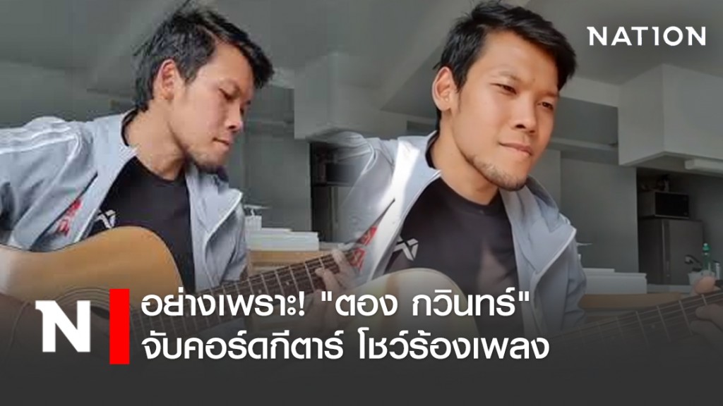 อย่างเพราะ! "ตอง กวินทร์" จับคอร์ดกีตาร์ โชว์ร้องเพลง"วาฬเกยตื้น"