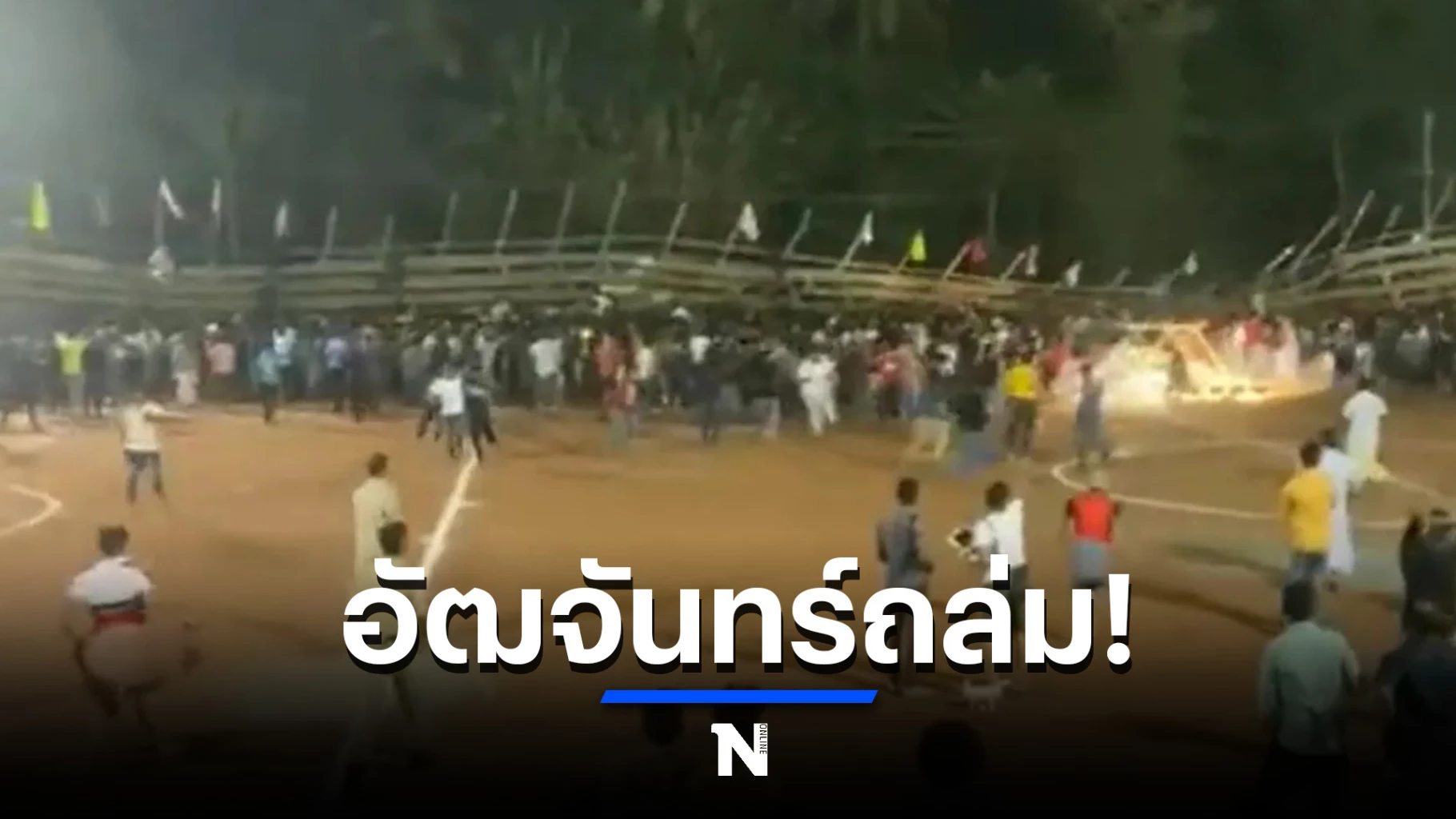 โดยสำนักข่าวซินหัวรายงานว่าเมื่อคืนวันเสาร์ (19 มี.ค.) ส่วนหนึ่งของอัฒจันทร์ดังกล่าว ที่หมู่บ้านปูนก็อด เมืองกาลีกาวู เขตมาลัปปูรัม ซึ่งอยู่ห่างนครติรุวนันตปุรัม เมืองเอกของเกรละไปทางเหนือราว 378 กิโลเมตร ได้พังถล่มลงมา