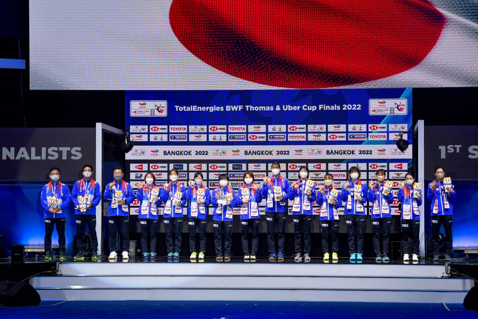 ขณะที่พิธีมอบรางวัลให้ทีมชนะเลิศ อูเบอร์ คัพ 2022 ให้กับทีม เกาหลีใต้ ได้รับเกียรติจาก มร.พอล อิริค โฮเยอร์ ประธานสหพันธ์แบดมินตันโลก, พลอากาศเอก มณฑล สัชฌุกร อุปนายกสมาคมแบดมินตันแห่งประเทศไทยฯ, คุณลิลลี่ โก๊ะ รองประธานฝ่ายสื่อสารการตลาดและบริการ ภาคพื้นเอเชีย-แปซิฟิก ตะวันออกกลาง บริษัท โททาลเอนเนอร์ยี่ส์ จำกัด เป็นผู้มอบรางวัล