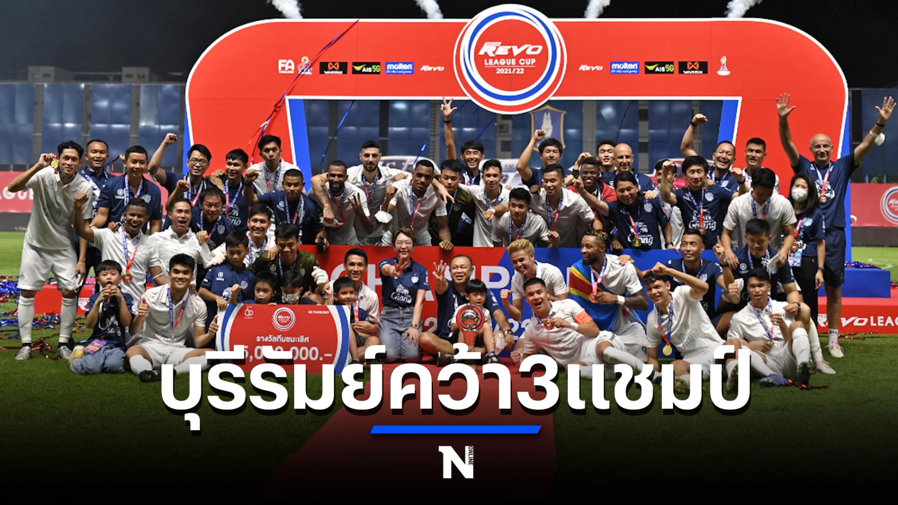 จบเกม บุรีรัมย์ ยูไนเต็ด เอาชนะ พีที ประจวบ เอฟซี ไปได้ 0-4 ประตู ผงาดคว้าแชมป์ฟุตบอลรีโว่ ลีกคัพ 2021/22 เป็นสมัยที่ 6 ซึ่งก่อนหน้านี้เคยคว้าแชมป์ลีกคัพมาได้ในปี 2011, 2012, 2013, 2015, 2016 ล่าสุด 2021/22 และเป็นแชมป์ใบที่ 3 ของฤดูกาลนี้ ต่อจากไทยลีก และช้างเอฟเอ คัพ