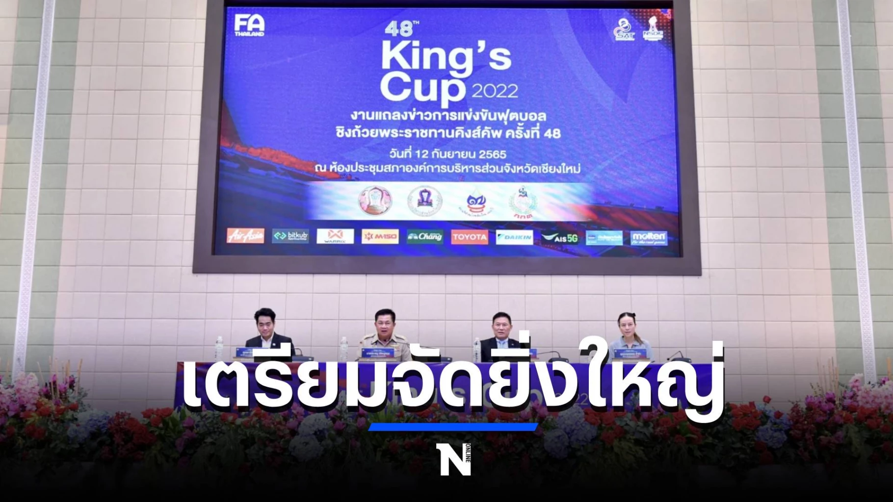 ความเคลื่อนไหว การแข่งขันฟุตบอลชิงถ้วยพระราชทาน “คิงส์คัพ” ครั้งที่ 48 ซึ่งจะจัดที่ สนามกีฬาสมโภชเชียงใหม่ 700 ปี จ.เชียงใหม่ ที่สนามสมโภชเชียงใหม่ 700 ปี วันที่ 22 กับ 25 ก.ย.65 มี 4 ชาติเข้าร่วม คือ ทีมชาติไทย (อันดับ 111 โลก), “เสือเหลือง” มาเลเซีย (148 โลก), ทาจิกิสถาน (109 โลก) และ ตรินิแดดแอนด์โตเบโก (101 โลก)