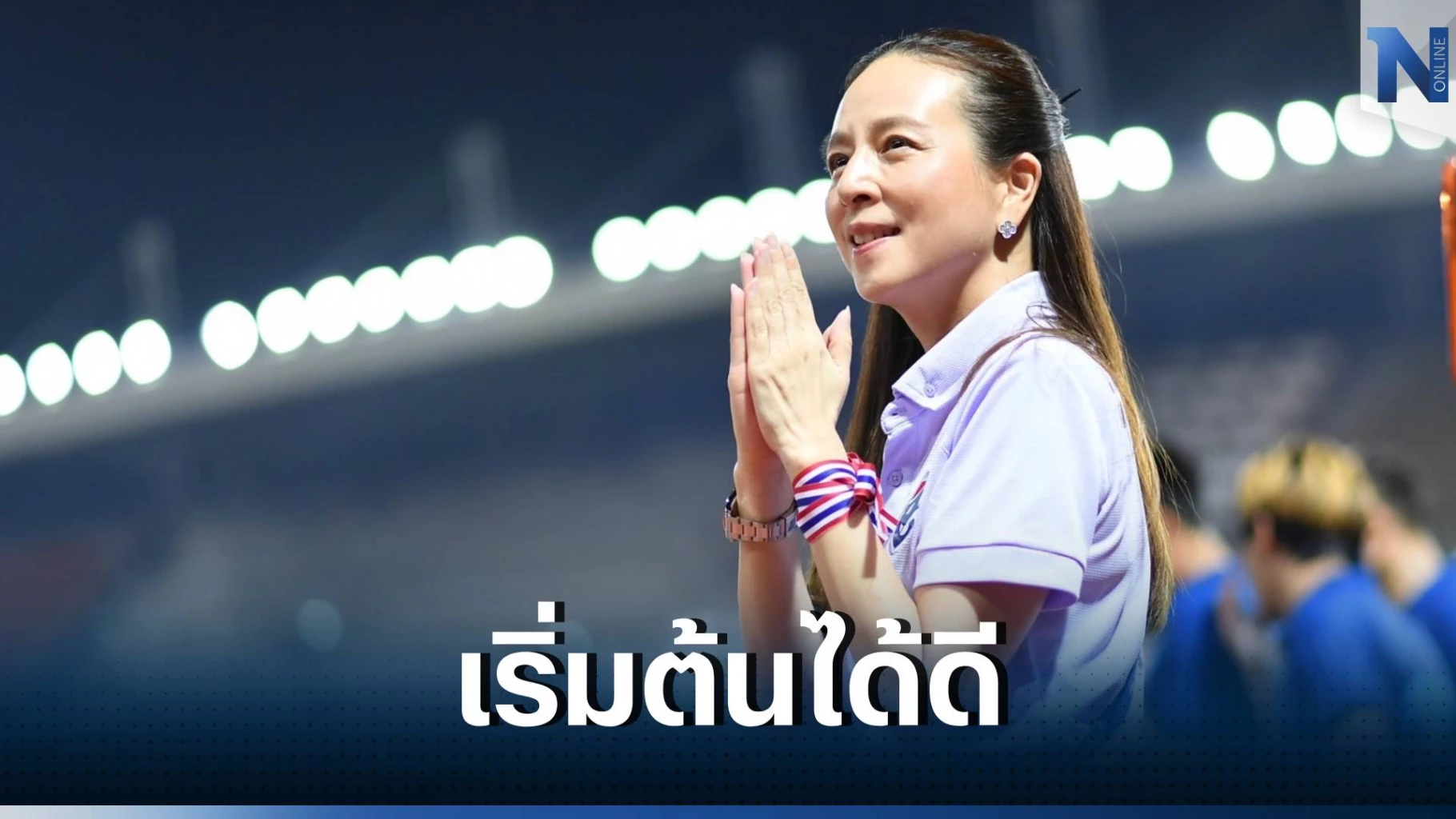 “ก่อนอื่น แป้ง ต้องชื่นชมทีมงานสตาฟฟ์โค้ช และ น้อง ๆ ผู้เล่นทุกคน ส่วนตัวดีใจที่เราชนะถึง 6-0 ถือเป็นการเริ่มต้นเตรียมทีมที่ดี ก่อนป้องกันแชมป์อาเซียน แต่แม้ว่าเราจะชนะด้วยสกอร์ขนาดนี้ ก็ยังมีจุดบกพร่องที่ต้องแก้ไข และ ต้องพัฒนากันต่อไป” มาดามแป้ง เริ่มกล่าว