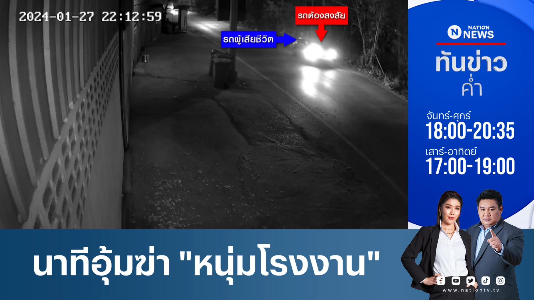 ตำรวจรู้ตัวคนร้ายก่อเหตุฆาตกรรม หนุ่มโรงงานรถยนต์ ฆ่ามัดมือมัดเท้า ริมถนนมอเตอร์เวย์ พบวางเเผนอย่างดี มีคีย์การ์ดภายในหมู่บ้าน เปิดทางเข้าออกเอง / ตำรวจรู้ตัวคนร้ายทั้งหมดแล้ว พุ่งปมชู้สาวประเด็นเดียว พร้อมเปรยว่าหากจับตัวได้ทั้งหมด อาจจะทำให้ทุกคนตะลึง