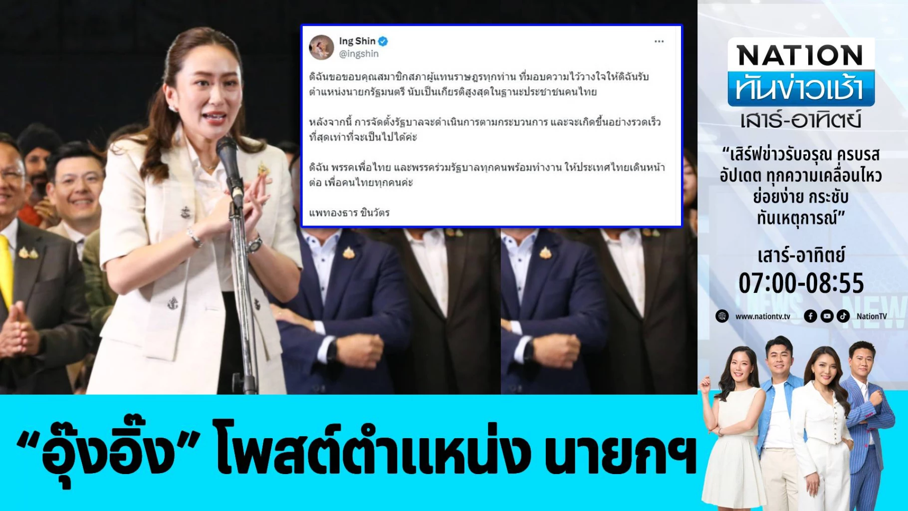 “อุ๊งอิ๊ง” โพสต์ เป็นเกียรติสูงสุด รับตำแหน่ง นายกฯ | ทันข่าวเช้า | 18 ส.ค. 67 | PART 5