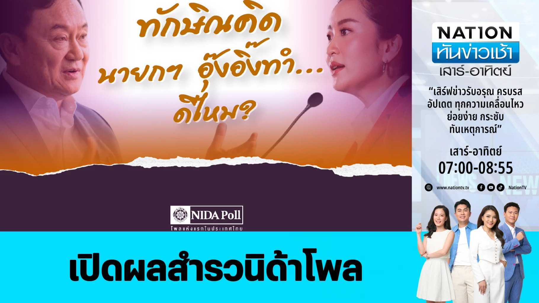 เปิดผลสำรวจนิด้าโพลในหัวข้อ ทักษิณคิด นายกฯ อุ๊งอิ๊งทำ … ดีไหม? โดยผลโพลชี้ประชาชนไม่เห็นด้วย นโยบายทักษิณ "ต่างชาติเช่าที่ 99 ปี-กาสิโน"
