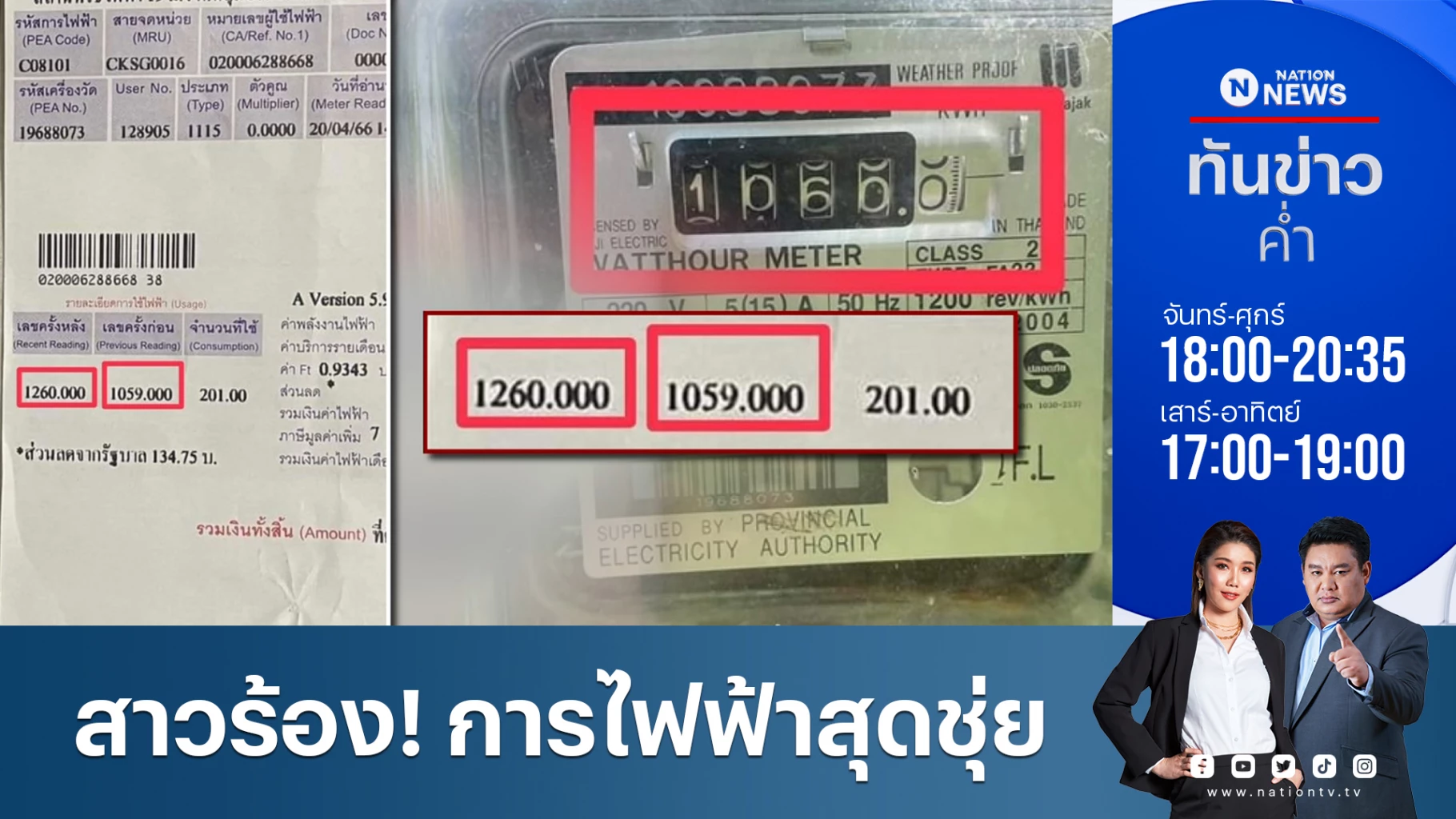 สาวร้อง! การไฟฟ้าสุดชุ่ยติดมิเตอร์ไฟสลับบ้าน ทำจ่ายค่าไฟแพง | เนชั่นทันข่าวค่ำ | 25 เม.ย. 66 | PART 1