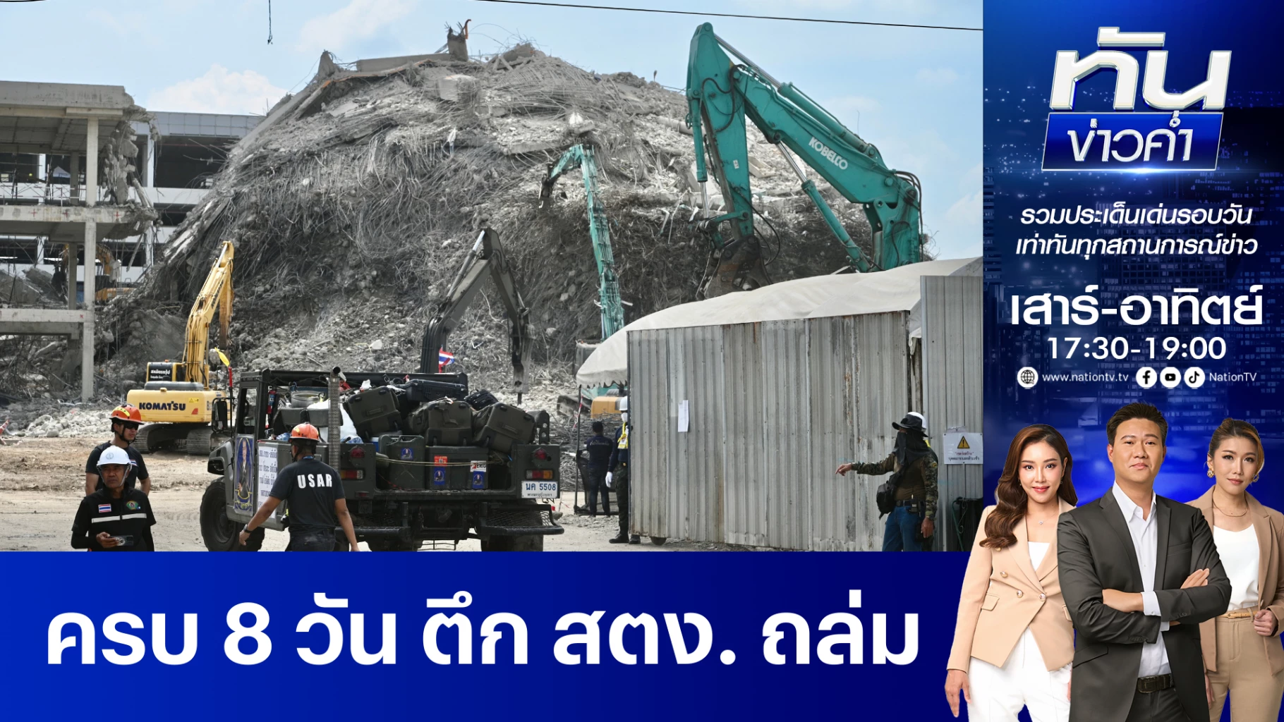 ภายหลังเปิดปฏิบัติการใช้เครื่องจักรหนักทั้งขุดเจาะ ร่วมกับการกู้ชีพ ทั้ง 4 โซน เปิดพื้นที่ด้านหน้าซากตึกที่พังถล่ม ล่าสุดพบผู้เสียชีวิตเพิ่มอีก 1 ศพ ขณะที่กู้เผยมีสัญญาณที่ดีจะนำร่างผู้เสียชีวิตกลับบ้านได้ หลังจาก 3 วันที่ผ่านมามีอุปสรรค ติดตามรายงานจาก คุณอิทธิพัทธ์ ปิ่นระโรจน์