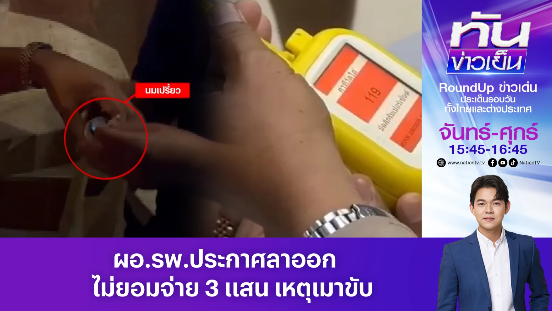 "ผอ.รพ." เมาขับรถชนคนข่าวบาดเจ็บ 2 ราย ตำรวจเป่าแอลกอฮอล์ พบพุ่งสูงถึง 119 มิลลิกรัมเปอร์เซ็นต์ ประกาศลาออก ลั่น พร้อมสู้คดี แต่ไม่ยอมจ่าย 3 แสน
