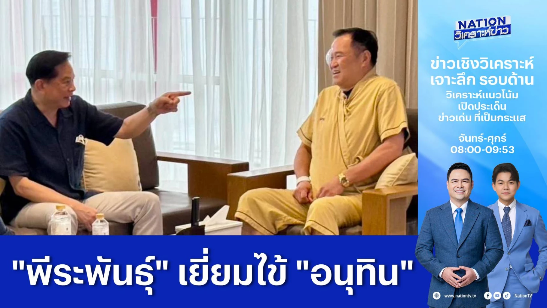นายพีระพันธุ์ สาลีรัฐวิภาค รองนายกรัฐมนตรีและรมว.พลังงาน และหัวหน้าพรรครวมไทยสร้างชาติ เดินทางไปเยี่ยมให้กำลังใจ นายอนุทิน ชาญวีรกูล รองนายกรัฐมนตรีและรมว.มหาดไทย ที่นอนพักรักษาตัวในรพ.