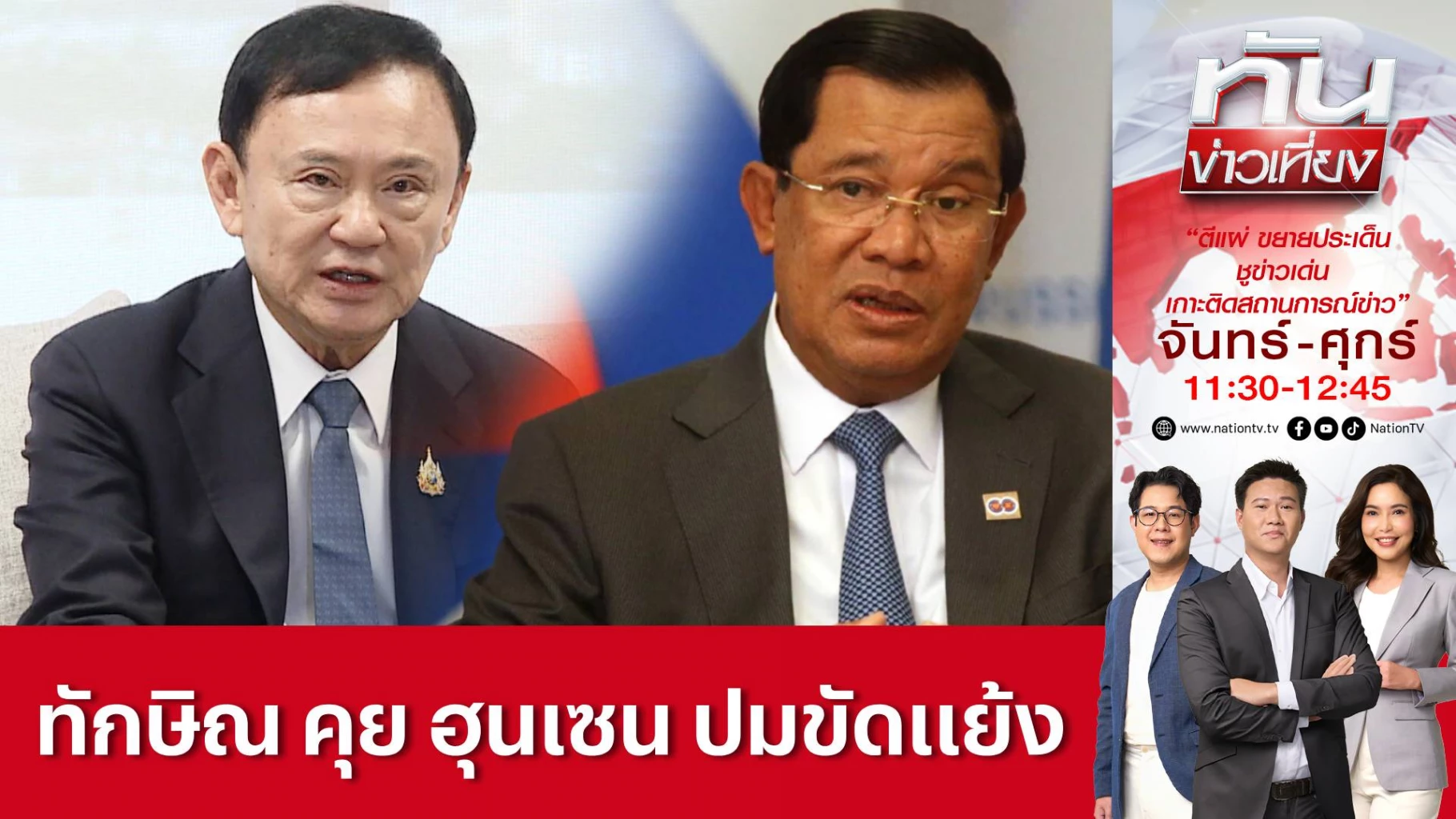 ทักษิณ ชินวัตร อดีตนายกรัฐมนตรี บอกถึงกรณีสถานการณ์ความตรึงเครียดระหว่างไทย-กัมพูชา หลังเกิดเหตุปะทะบริเวณช่องบก จังหวัดอุบลราชธานี ว่า คิดว่าน่าจะเคลียร์กันจบแล้ว