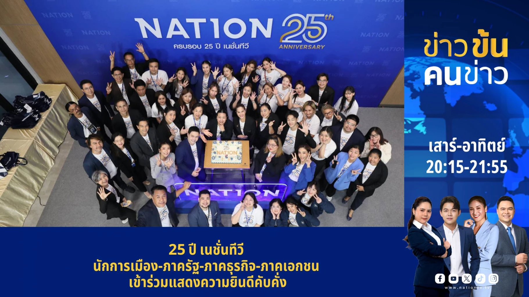 ในโอกาส ครบรอบ 25 ปี เนชั่นทีวี ก้าวสู่ปีที่ 26 เนชั่นทีวีเปิดบ้านรับคำอวยพร ซึ่งบรรยากาศเป็นไปด้วยความอบอุ่น ชื่นมื่น เป็นอย่างมาก ทั้งคณะรัฐมนตรี นักการเมือง ภาคธุรกิจภาครัฐ ภาคเอกชน เดินทางเข้ามามอบกระเช้าดอกไม้ร่วมอวยพร เนชั่นทีวี กันอย่างเนืองแน่น