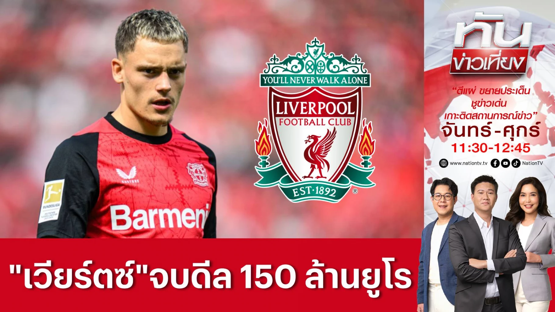 การย้ายทีมของ ฟลอเรียน เวียร์ตซ์ เพลย์เมคเกอร์ฝีเท้าดีทีมชาติเยอรมนี และ ไบเออร์ เลเวอร์คูเซ่น ไปยัง ลิเวอร์พูล ด้วยค่าตัวราว 150 ล้านยูโร (ประมาณ 126 ล้านปอนด์ หรือ 5,850 ล้านบาท)