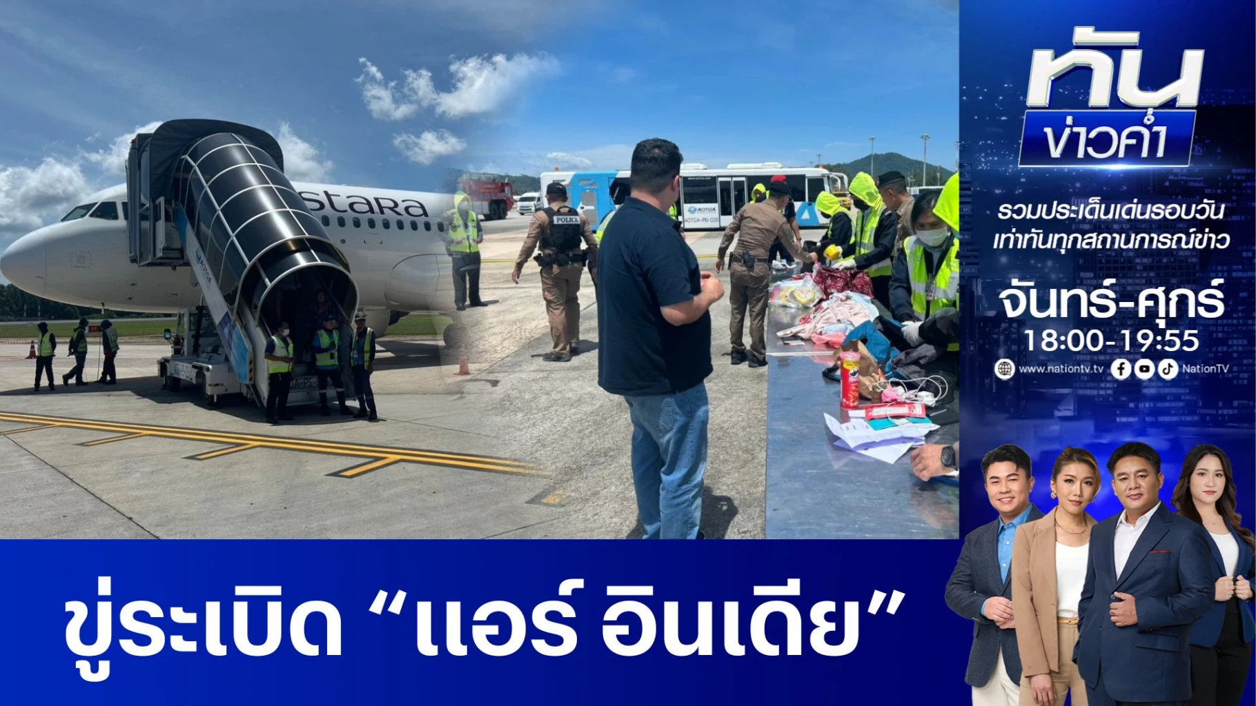 ผอ.ท่าอากาศยานภูเก็ตเผย พบข้อความ ขู่วางระเบิด ‘F… you all bomb’ อยู่ในห้องน้ำของสายการบินแอร์อินเดีย ก่อนขอลงฉุกเฉินที่สนามบินภูเก็ต ผู้โดยสารปลอดภัย นำไปอยู่ในพื้นที่พักคอยระหว่างค้นหาวัตถุระเบิด
