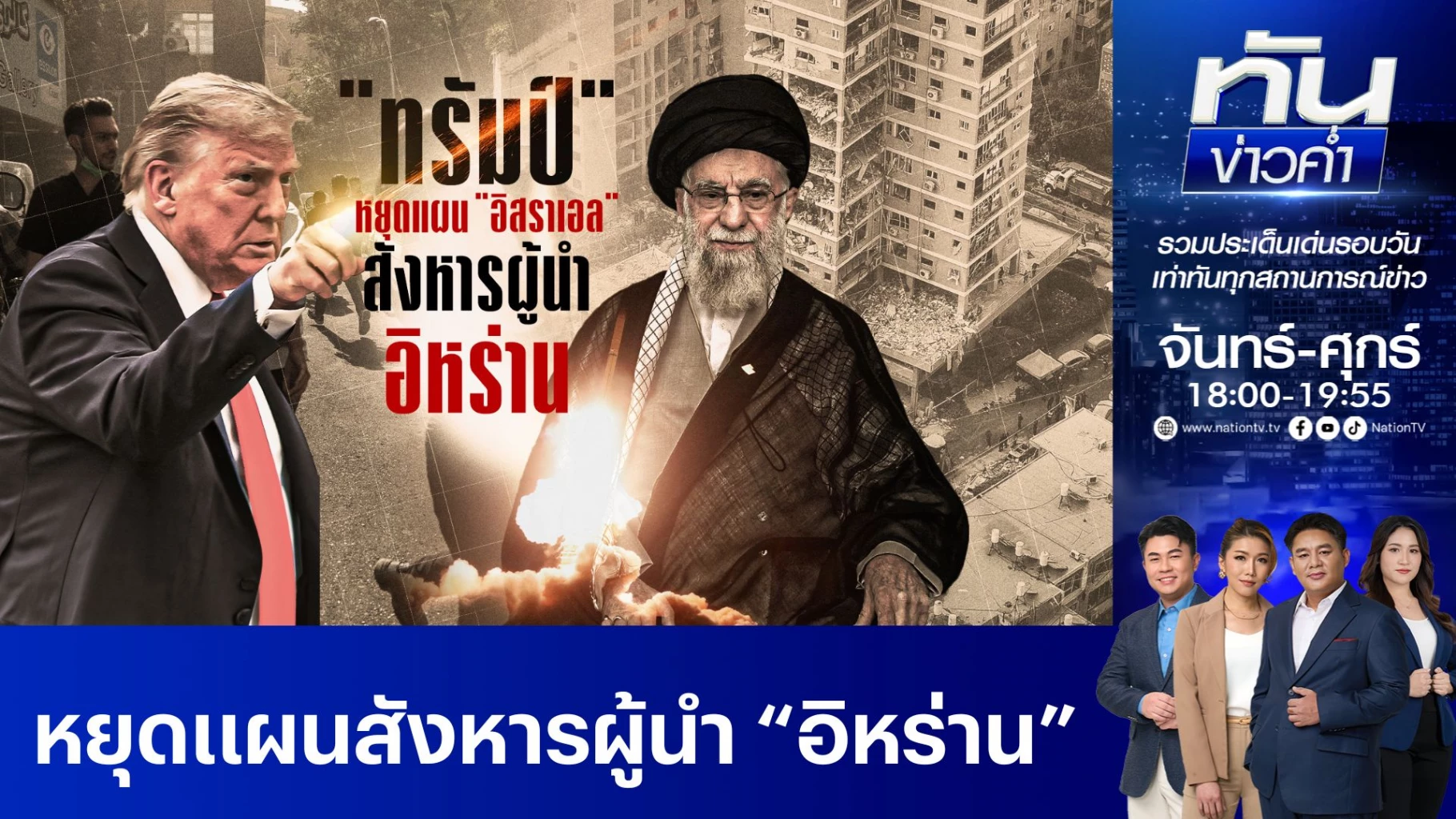 กลายเป็นข่าวใหญ่เมื่อมีรายงานว่า ปธน.ทรัมป์ ได้คัดค้านแผนการสังหารผู้นำอิหร่านของอิสราเอล แล้วทำไมทรัมป์ถึงไม่เห็นด้วยกับแผนนี้ ขณะเดียวกันต้องจับตา ปธน.ปูติน ของรัสเซียว่าจะมีบทบาทเป็น "คนกลาง" ช่วยสงบศึกหรือไม่ / ติดตามกับ คุณปิง กิตติดิษฐ์ ธนดิษฐ์สุวรรณ