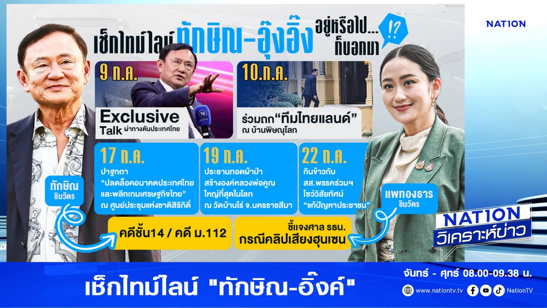 ไทม์ไลน์ นายทักษิณ ชินวัตร จะมีงานปาฐกถา “ปลดล็อกอนาคตประเทศไทย และพลิกเกมเศรษฐกิจไทย” และ เป็นประธานทอดผ้าป่า สร้างองค์หลวงพ่อคูณใหญ่ที่สุดในโลก ณ วัดบ้านไร่ จ.นครราชสีมา และ