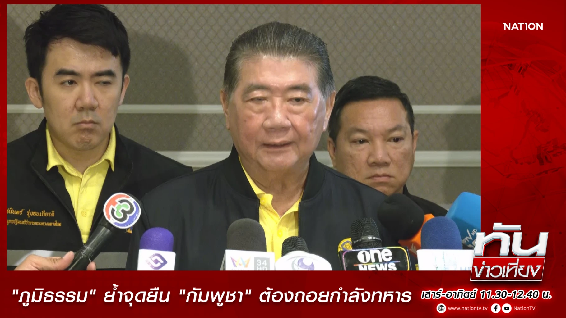 นายภูมิธรรม เวชยชัย รองนายกรัฐมนตรีและรัฐมนตรีว่าการกระทรวงมหาดไทยในฐานะรักษาการนายกรัฐมนตรี ย้ำ จุดยืน ต้องการเห็นความจริงใจเขมร หลัง คุย “ทรัมป์” เผย “มาริษ” เตรียมหารือ รมว.กัมพูชา เที่ยงนี้ ชี้ เงื่อนไข ต้องถอยกำลังทหาร-เคลื่อนย้ายยุทโธปกรณ์ ออกจากพื้นที่ทั้งหมด เป็นหลักประกันว่าจะไม่บิด-ไม่เป็นภัยต่อประชาชนและผลประโยชน์ประเทศ ยัน ทหารไทยทำหน้าที่อย่างเต็มจนกว่าคุยลงตัว - มองภาษีสหรัฐ ทิศทางบวก พร้อมขอบคุณ สหรัฐ-มาเล-จีน ยื่นมือช่วยด้วยความเป็นห่วง