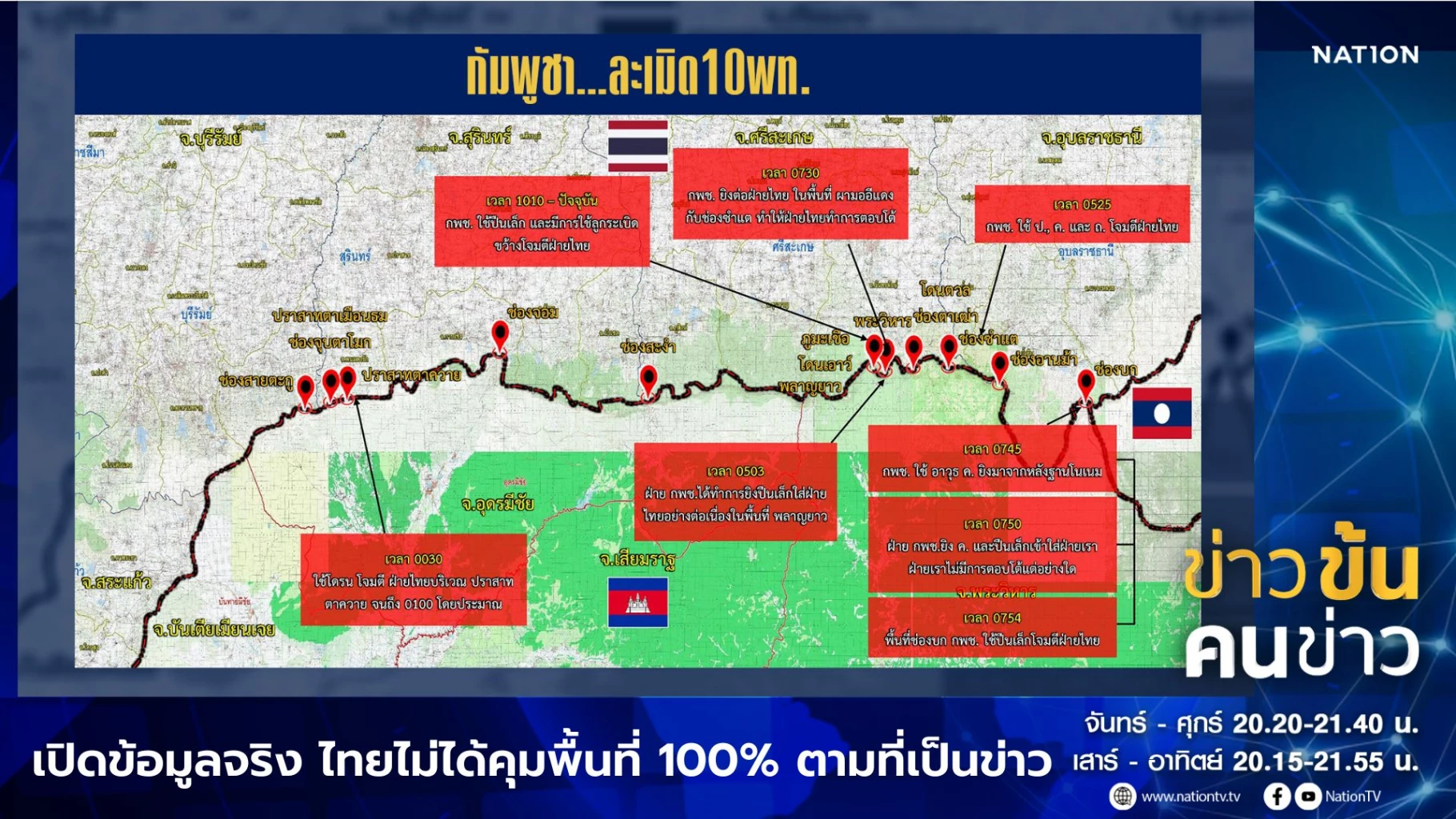 หลังก่อนถึงช่วงเวลาหยุดยิง ทหารไทย-กัมพูชา ต่างโจมตีกันอย่างหนัก รายการข่าวข้นคนข่าว เปิดข้อมูลจริงจากทหารแนวหน้าว่า เราไม่ได้ควบคุมพื้นที่ได้ 100% ตามที่หลายเพจอ้าง