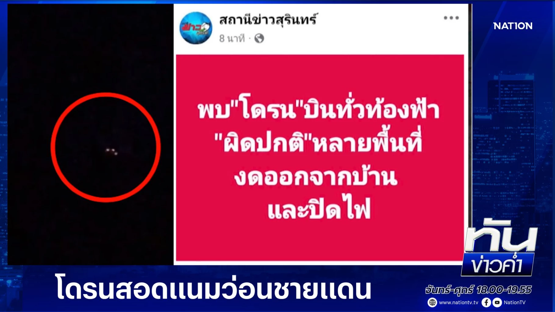 แม้ว่าสำนักงานการบินพลเรือนแห่งประเทศไทย (กพท.) ออกประกาศด่วน ห้ามทำการบินหรือปล่อยอากาศยานซึ่งไม่มีนักบิน หรือ โดรน ทุกประเภทในพื้นที่ทั่วประเทศ มีผลตั้งแต่วันที่ 30 กรกฎาคม ถึงวันที่ 15 สิงหาคมนี้ หรือจนกว่าจะมีคำสั่งเปลี่ยนแปลง เพื่อป้องกันความเสี่ยงด้านความมั่นคง จากสถานการณ์ความไม่สงบบริเวณชายแดนไทย–กัมพูชา แต่ยังมีรายงานพบ “โดรน” บินเหนือท้องฟ้าในหลายพื้นที่จังหวัดชายแดน