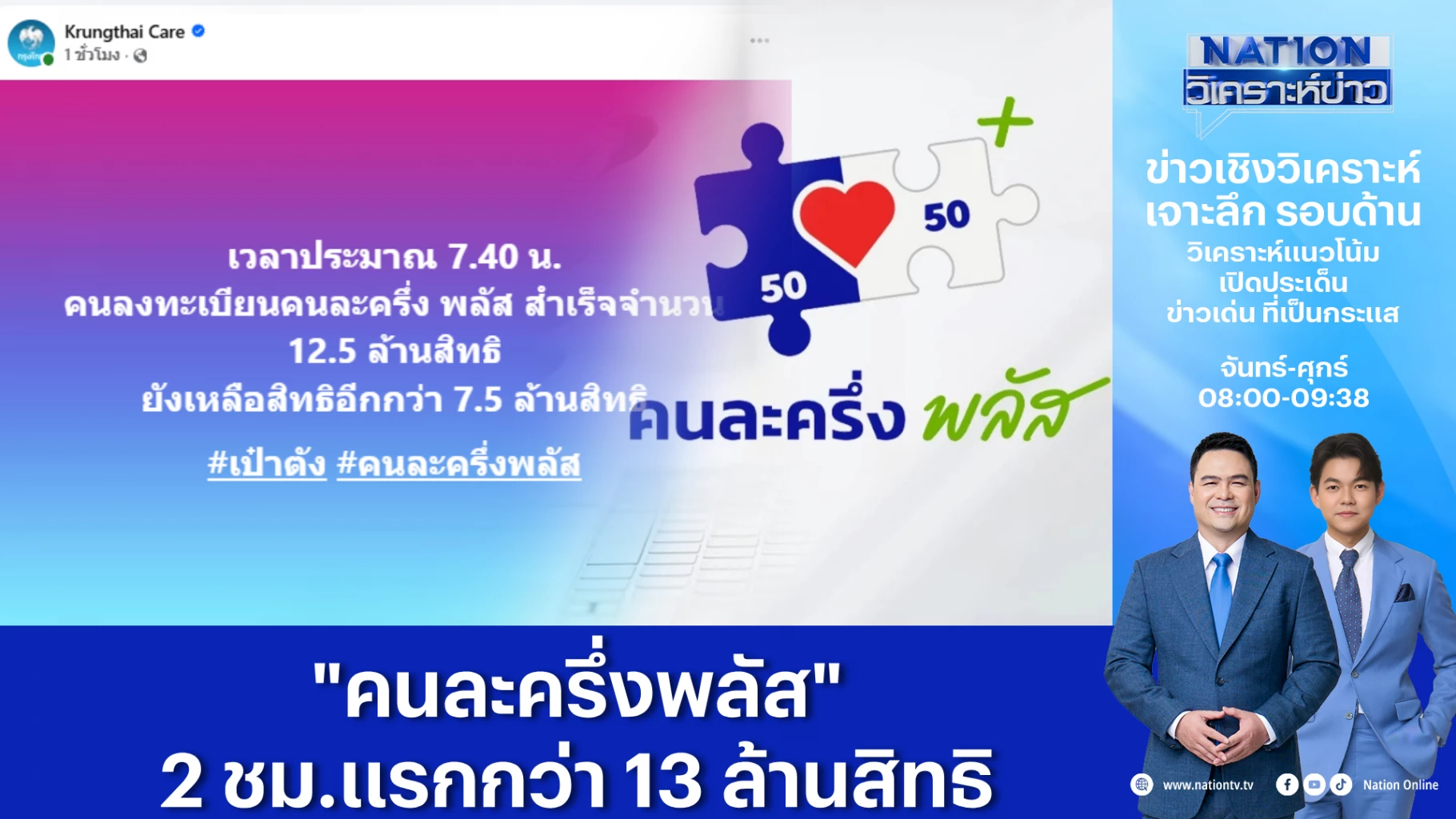 รัฐบาลปลื้ม ปชช.ลงทะเบียนรับสิทธิ “คนละครึ่งพลัส” ล้นหลาม เพียง 2 ชั่วโมงแรก ลงทะเบียนสำเร็จแล้วกว่า 13 ล้านสิทธิ เผย กรณีระบบแจ้งว่า “กำลังรอผลการลงทะเบียน ระบบจะแจ้งผลผ่านการแจ้งเตือนของแอปฯ เป๋าตัง หรือ SMS ภายใน 3 วัน”