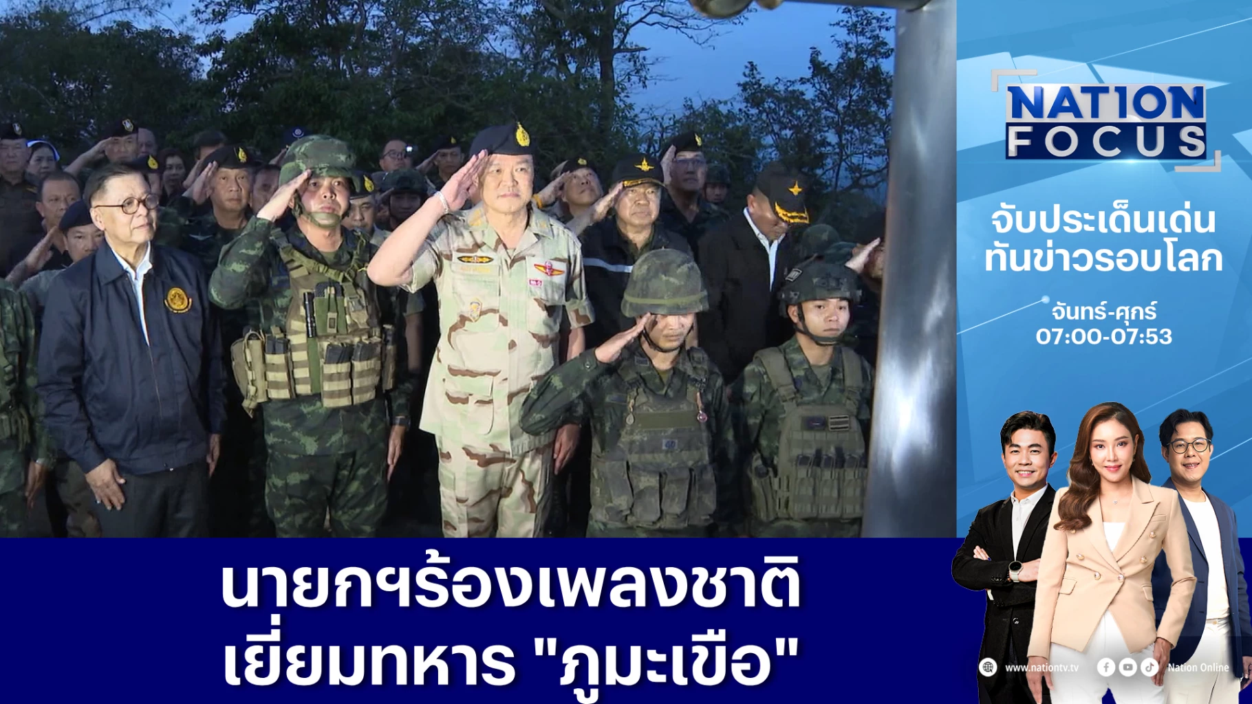 เพื่อตรวจเยี่ยมการปฏิบัติงานของกองกำลังแนวหน้า ร่วมร้องเพลงชาติ กับเหล่าทหารกล้าบนภูมะเขือ พร้อมรับฟังบรรยายสรุปสถานการณ์ ทหารเหยียบทุ่นระเบิดที่ผ่านมา 7 ครั้ง