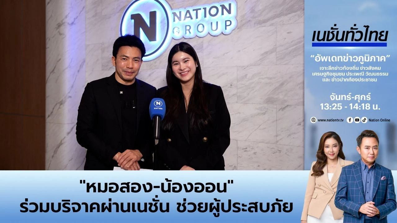 คุณหมอสอง นายแพทย์ นพรัตน์ รัตนวราห แพทย์ศัลยกรรมชื่อดัง พร้อมด้วย “น้องออน สมฤทัย” ภรรยาสาวสวย อินฟลูเอนเซอร์คนดัง เดินทางมาที่ตึกเนชั่นทีวี ถนนบางนาตราด มาบริจาคเงินและเครื่องอุปโภคบริโภค ผ่านทางมูลนิธิเนชั่น เพื่อร่วมส่งกำลังใจและช่วยเหลือผู้ประสบภัยพิบัติทางภาคใต้ โดยมีคุณปกรณ์ พึ่งเนตร บรรณาธิการบริหาร เนชั่นทีวี และ คุณวิชาธร วงษ์พันธุ์ รองบรรณาธิการบริหารเนชั่นทีวี เป็นตัวแทนมูลนิธิเนชั่น รับมอบสิ่งของ