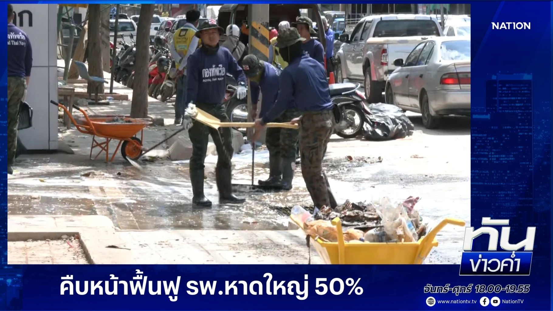 โรงพยาบาลหาดใหญ่เดินหน้าฟื้นฟูต่อเนื่อง หลังน้ำท่วมหนัก ล่าสุดความคืบหน้าแตะ 50% เจ้าหน้าที่หลายหน่วยยังระดมกำลังทำความสะอาด ขณะที่บริการผู้ป่วยเริ่มทยอยเปิดเพิ่ม รอระบบไฟ-ห้องตรวจฟื้นตัว