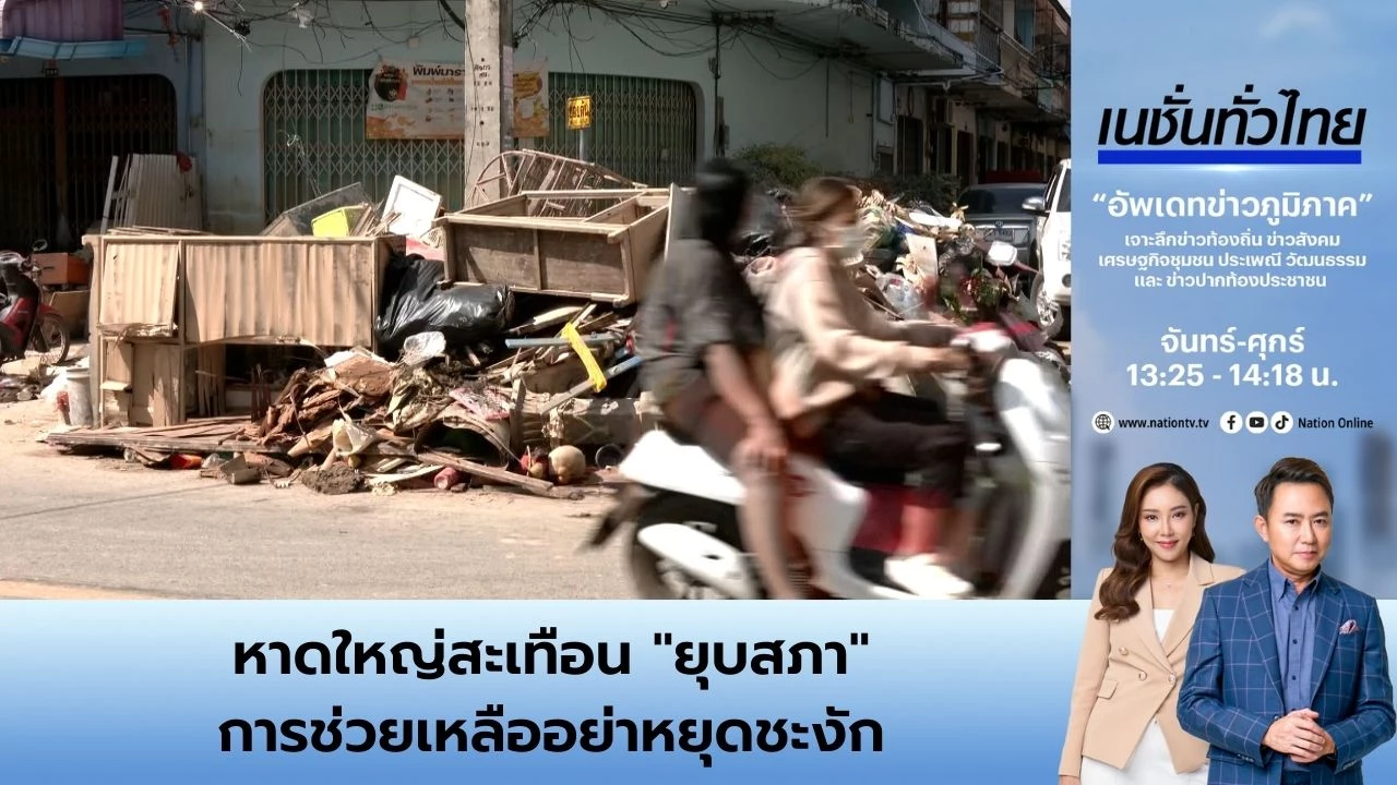 การยุบสภาทำให้ชาวหาดใหญ่พูดเป็นเสียงเดียวกันว่าการให้ความช่วยเหลือต่างๆจะหยุดชะงัดไปด้วยหรือไม่ เพราะหลายมาตรการยังคงต้องรอการอนุมัติจากรัฐบาล ในขณะที่วันนี้การฟื้นฟูเมืองยังไปไม่ถึงไหนกองขยะยังมีให้เห็นทุกบ้าน 15 วันแล้วยังจัดเก็บไม่หมด ..ติดตามจากคุณสุพิชฌาย์ รัตนะ รายงานสดเข้ามาจากอ.หาดใหญ่ จ.สงขลา