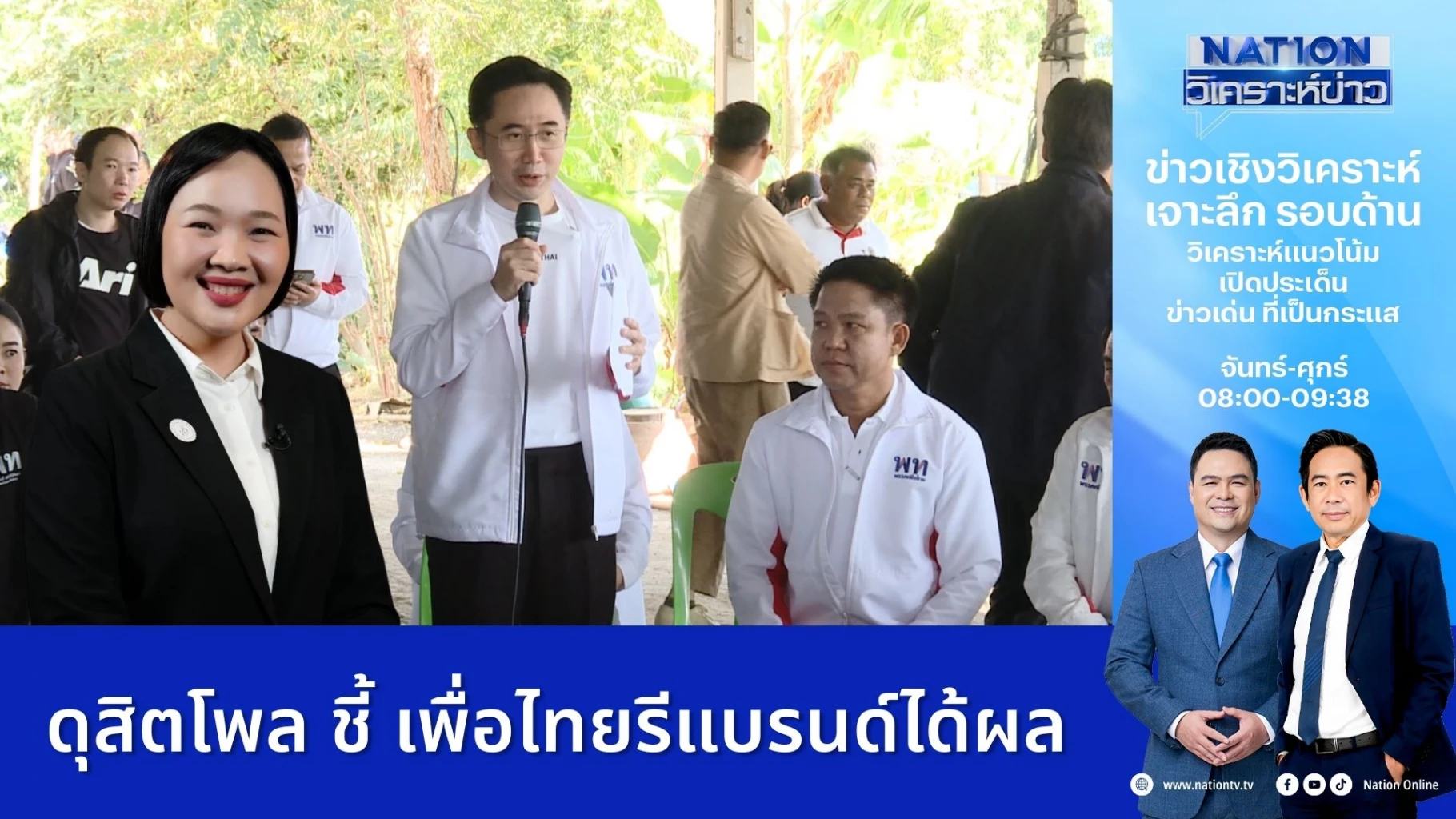 ดร.พรพรรณ บัวทอง ผอ.สวนดุสิตโพล เผย จากการสำรวจคะแนนนิยมล่าสุดพบว่าพรรคเพื่อไทย คะแนนนิยมสูงขึ้น หลังจากรีแบรนด์พรรคใหม่ ชู “ยศชนัน” แคนดิเดตนายกฯ ของพรรคเพื่อไทย ซึ่ง “ยศชนัน” สื่อสารถูกใจประชาชน ทำให้คะแนนพุ่ง โดยเฉพาะพื้นที่ภาคอีสาน เหนือ ส่วน กทม.คะแนนยังไม่สูง ขณะที่ เหตุภัยพิบัติหาดใหญ่ - รบกัมพูชาค้างคา ฉุดคะแนนพรรคภูมิใจไทย