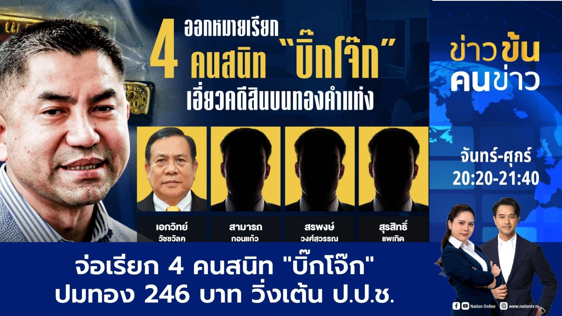 เตรียมออกหมายเรียกผู้ที่ถูกกล่าวหาว่าได้ร่วมกระทำผิดในคดีดังกล่าว อีก 4 ราย ประกอบด้วย 1.เอกวิทย์ วัชชวัลคุ กรรมการ ป.ป.ช. 2. นายสามารถ กอนแก้ว หรือ เอ็ดเวิร์ด 3.นายสรพงษ์ วงศ์สุวรรณ และ 4.นายสุรสิทธิ์ แพเกิด มารับทราบข้อกล่าวในฐานความผิดเดียวกับ พล.ต.อ.สุรเชษฐ์ หรือ บิ๊กโจ๊ก และ นายสมบัติ ธรธรรม ผู้ถูกกล่าวหา 2 ราย แรก ที่เข้ามอบตัวรับทราบข้อกล่าวหาไปก่อนหน้านี้