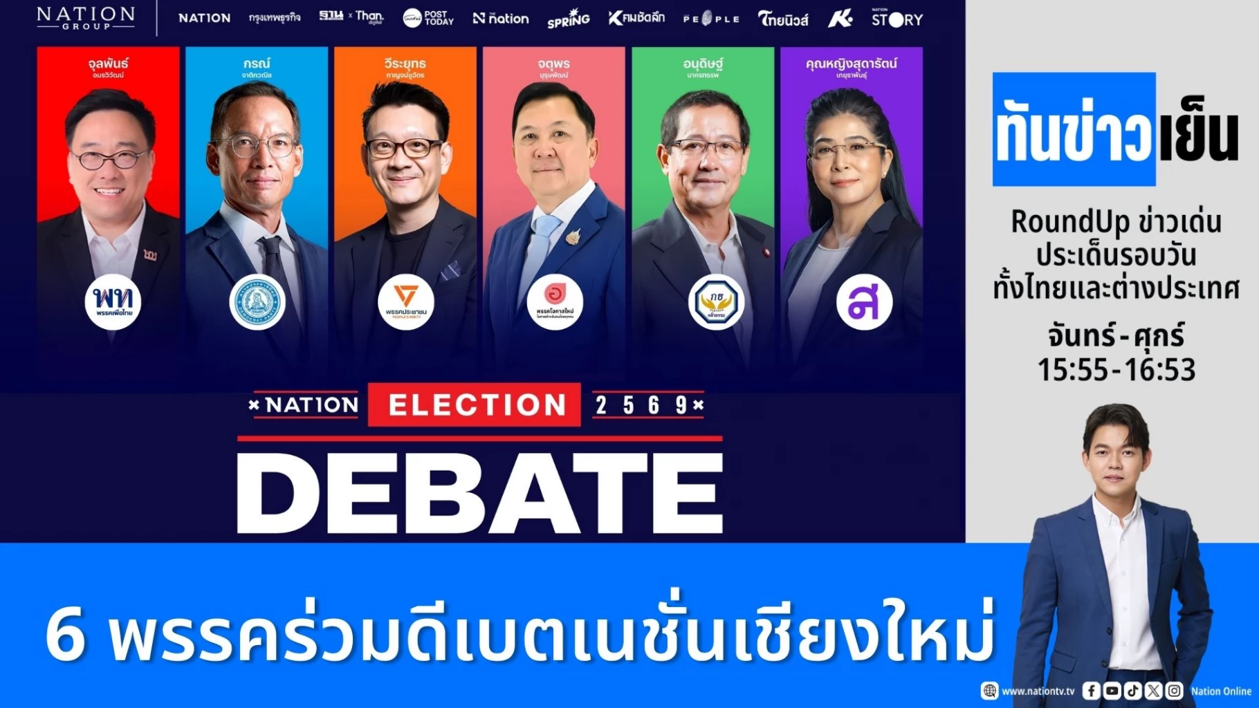 ศึกชิงนายกฯ คนที่ 33! Nation เปิดเวทีดีเบต "จุดเปลี่ยนประเทศไทย" บรรยากาศที่เวทีดีเบต NATION ELECTION 2569 จุดเปลี่ยนประเทศไทยภูมิภาค ซึ่งวันนี้เป็นภูมิภาคที่ 2 แล้วไปจัดที่ภาคเหนือ ที่ สวนสาธารณะ อบจ.เชียงใหม่ เปิดโอกาสให้ประชาชนทุกพื้นที่ได้ร่วมรับฟังแนวคิด นโยบาย และวิสัยทัศน์ของผู้นำการเมือง