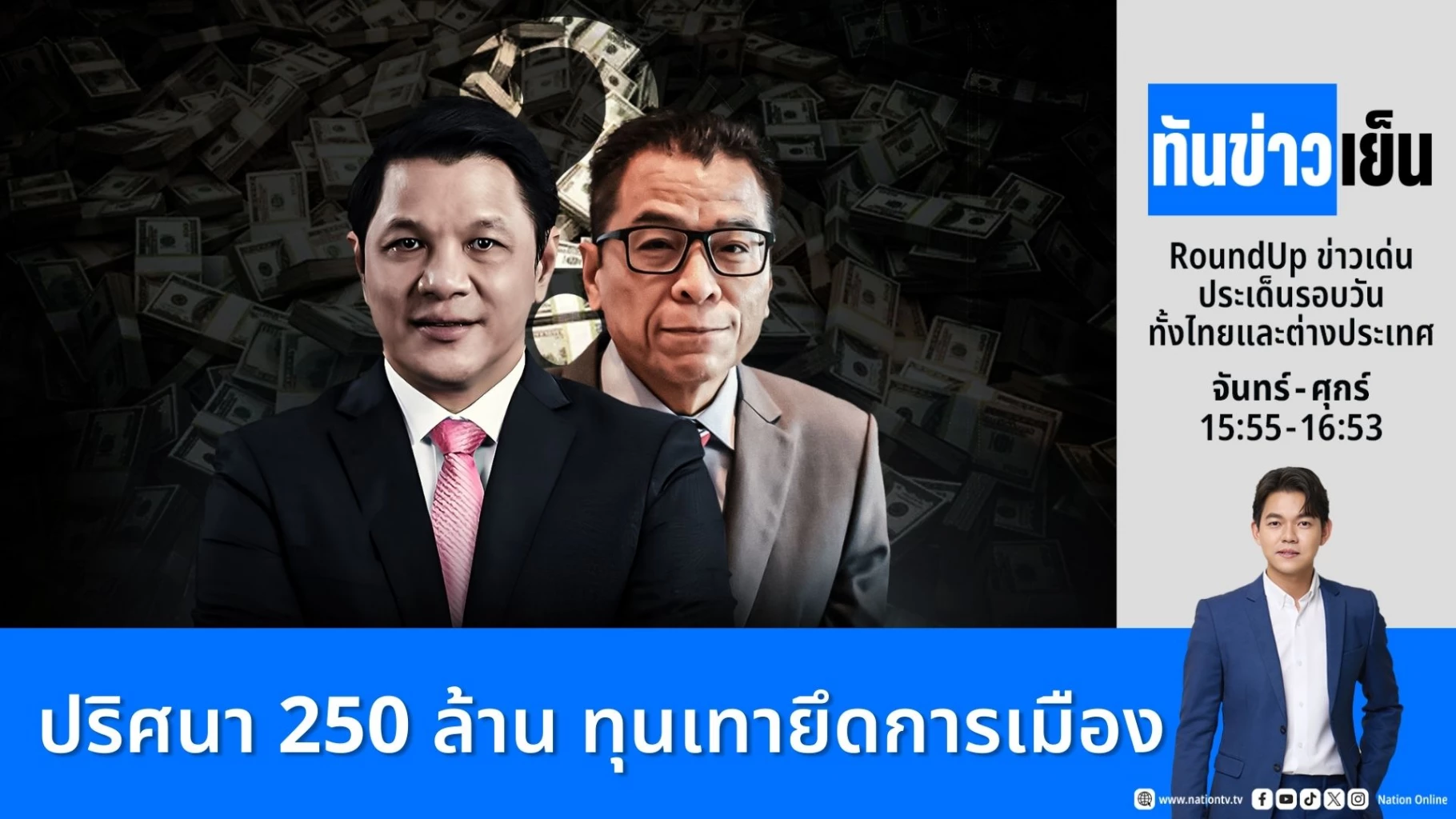นายวิทัย รัตนากร ผู้ว่าการธนาคารแห่งประเทศไทย จับพิรุธเบิกเงินสด 250 ล้าน โยงเลือกตั้ง ล่าสุด รู้ตัวคนถอนเงินแล้ว ด้านนายอนุทิน ชาญวีรกูล ออกปากชม ผู้ว่าฯแบงก์ชาติ ทำหน้าที่ได้ดี ขณะที่ นายแสวง บุญมี เลขา กกต.จับมือแบงก์ชาติ เร่งสอบปมถอนเงินปริศนา หวังสกัดซื้อเสียง