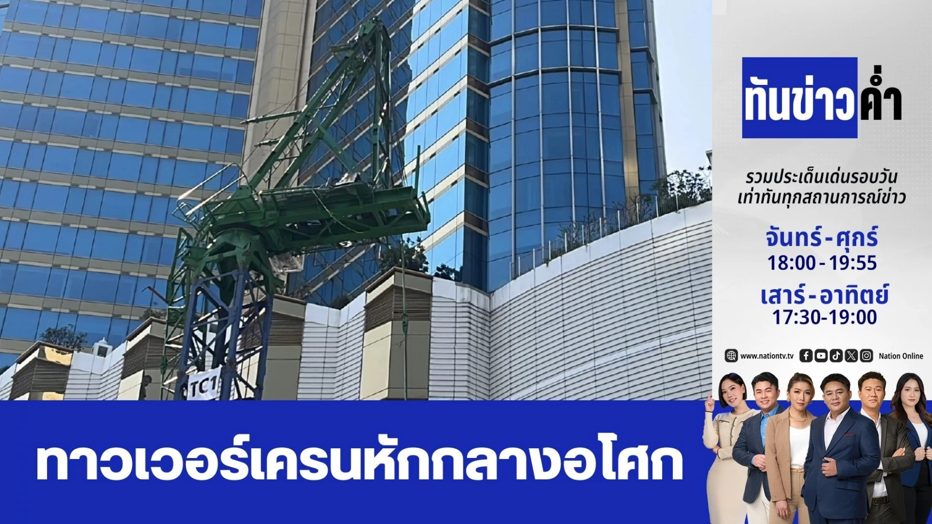 เมื่อเวลา10.27 น. เกิดเหตุทาวเวอร์เครนหักถล่ม ภายในพื้นที่ก่อสร้างใกล้ศูนย์การค้าเทอร์มินัล 21 อโศก ซอยสุขุมวิท 21 แขวงคลองเตยเหนือ เขตวัฒนา กรุงเทพมหานคร ส่งผลให้แขนของทาวเวอร์เครนหล่นลงมากระแทกใส่คนงานที่ปฏิบัติงานอยู่ด้านล่าง ได้รับบาดเจ็บรวม 2 ราย