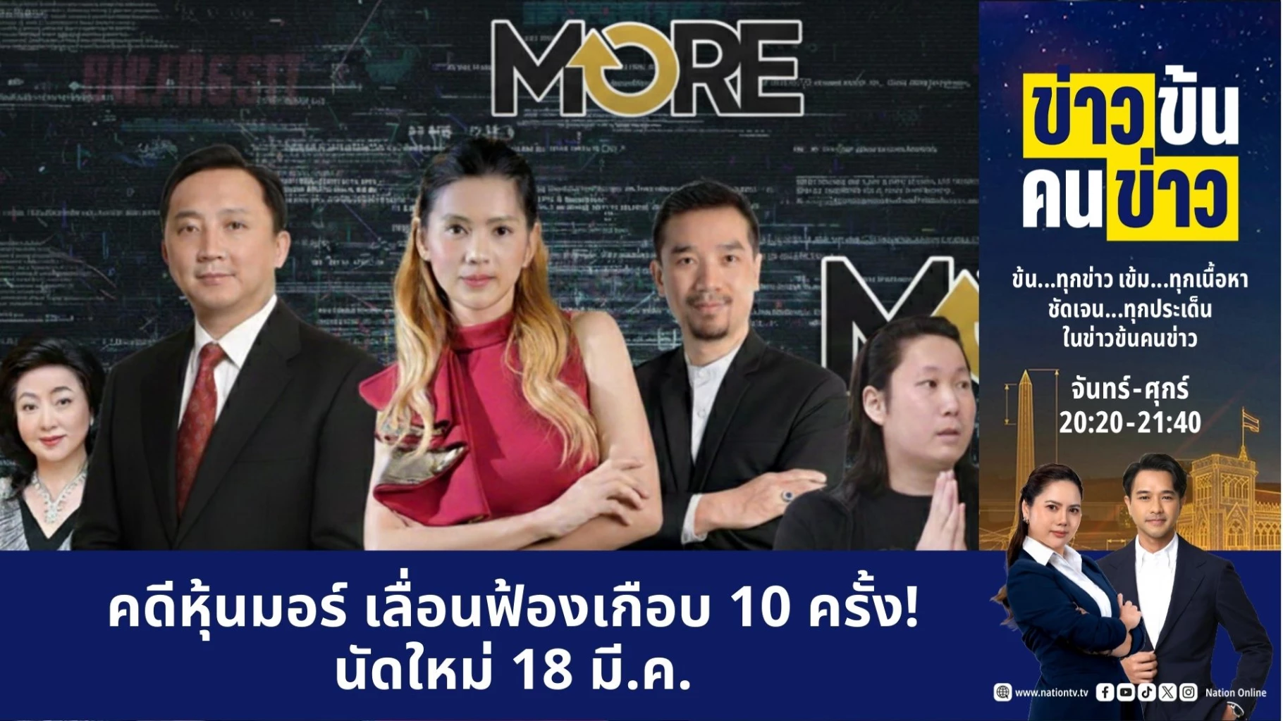 คดีนี้เริ่มจาก อัยการสูงสุด ชี้ขาดสั่งฟ้อง 42 ผู้ต้องหา คดีปั่นหุ้น บริษัท มอร์ รีเทิร์น จำกัด (มหาชน) หรือ MORE ทำให้ 10 บริษัทหลักทรัพย์ เสียหาย 4,500 ล้านบาท 6 ส.ค.68 อัยการคดีพิเศษ ยื่นฟ้องผู้ต้องหากลุ่มแรก 28 ราย ที่เข้ามารายงานตัวฟังคำสั่งฟ้องอัยการ ถูกนำตัวไปยื่นฟ้องเป็นจำเลยต่อศาลอาญาทันทีในความผิดฐาน