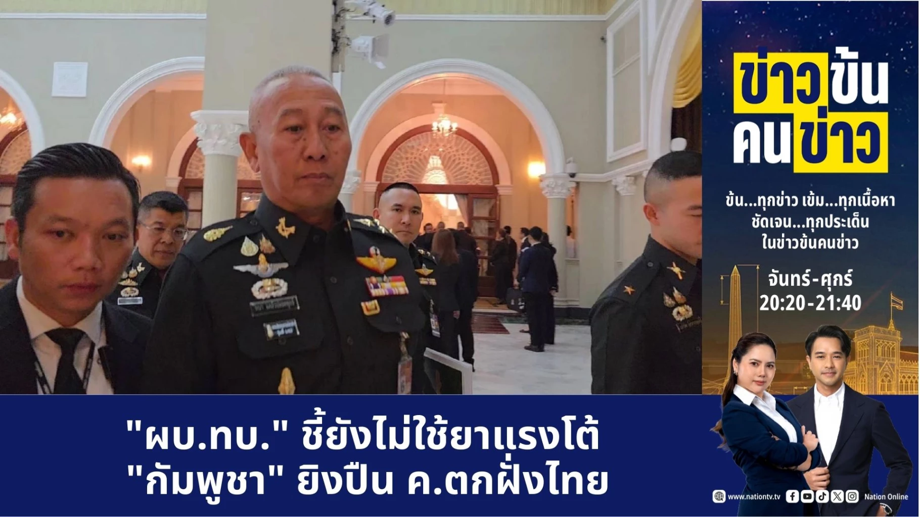 พล.อ.พนา แคล้วปลอดทุกข์ ผู้บัญชาการทหารบก (ผบ.ทบ.) กล่าวถึงเหตุการณ์ทหารกัมพูชายิงปืน ค.40 มม. มายังฝั่งไทย ว่า นายอนุทิน ชาญวีรกูล นายกรัฐมนตรี และรัฐมนตรีว่าการกระทรวงมหาดไทย ได้เชิญปลัดกระทรวงกลาโหม ขึ้นไปหารือในประเด็นดังกล่าว บนตึกไทยคู่ฟ้า ส่วนได้มีการสั่งการในพื้นที่ให้ดำเนินการอะไรหรือไม่ ผบ.ทบ. กล่าวว่า แม่ทัพดำเนินการอยู่แล้ว เมื่อถามว่า ไม่จำเป็นต้องใช้ยาแรงใช่หรือไม่ ผบ.ทบ. ยืนยันว่า ไม่จำเป็น