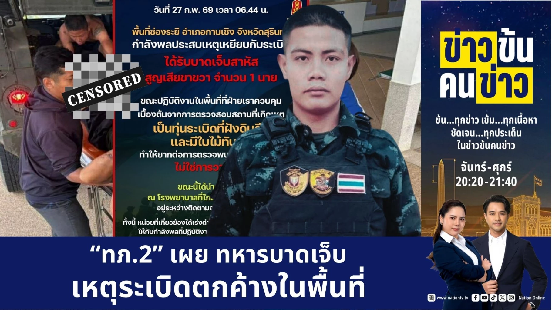 กรณีทหารไทยเหยียบกับระเบิดขาขาดไปอีก 1 ขา แต่ฝ่ายไทย โดยเฉพาะกองทัพดูนิ่งๆ รีบออกมาสรุปว่าเป็น “ทุ่นระเบิดเก่า” และไม่ได้แสดงท่าทีว่าจะเปิดเกมรุกกลับเขมร หรือแม้แต่ประท้วงไปยังรัฐบาลกัมพูชา เรื่องนี้คนไทยจำนวนไม่น้อยรู้สึกคาใจ “ข่าวข้นคนข่าว” จึงสอบถามไปยังผู้รู้ เกี่ยวกับกฎหมายระหว่างประเทศ