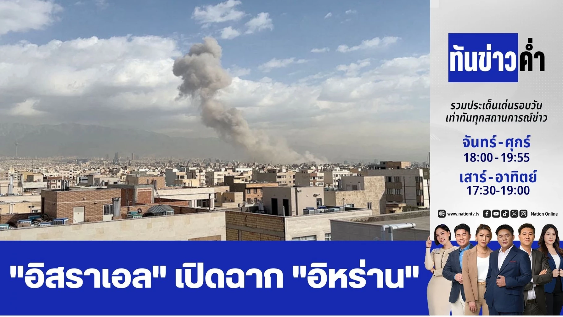 สำนักข่าวต่างประเทศรายงานว่า อิสราเอล ได้ประกาศเปิดฉากโจมตีก่อนเพื่อป้องกันภัยคุกคามจากอิหร่าน ซึ่งส่งผลให้ตะวันออกกลางก้าวเข้าสู่การเผชิญหน้าทางทหารรอบใหม่ ทำให้ความหวังในการแก้ไขปัญหาข้อพิพาทโครงการนิวเคลียร์ของอิหร่านผ่านวิถีทางการทูตกับกลุ่มประเทศตะวันตกริบหรี่ลง ขณะที่สื่ออิหร่านรายงานเกิดเหตุระเบิดหลายจุดในกรุงเตหะราน เมืองหลวงของประเทศ