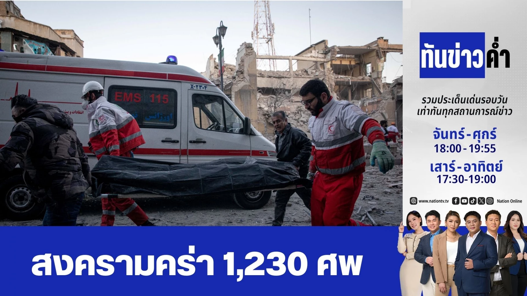 สงครามในตะวันออกกลางซึ่งปะทุขึ้นหลังสหรัฐอเมริกาและอิสราเอลร่วมมือกันเปิดฉากถล่มอิหร่านในวันที่ 28 กุมภาพันธ์ ยืดยาวเข้าสู่วันที่ 6 แล้ว / ขณะที่มีผู้เสียชีวิตในอิหร่านแล้วอย่างน้อย 1,230 ราย