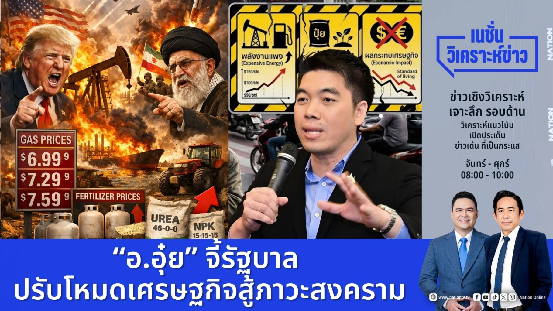 ท่าทีทรัมป์ กับ อิหร่าน และปฏิบัติการล่าสุด ชี้ชัด สงครามบานปลาย ยืดเยื้อ และเสี่ยงยกระดับ ทำให้ไทยต้องเผชิญภาวะพลังงานแพง ปุ๋ยแพง และผลกระทบเป็นลูกโซ่แน่ๆ นักวิชาการ ผู้รู้เรียกร้องให้รัฐบาลวางแผนรับมือให้จริงจังกว่านี้ ปรับโหมดเศรษฐกิจสู่สภาวะรับมือสงคราม”