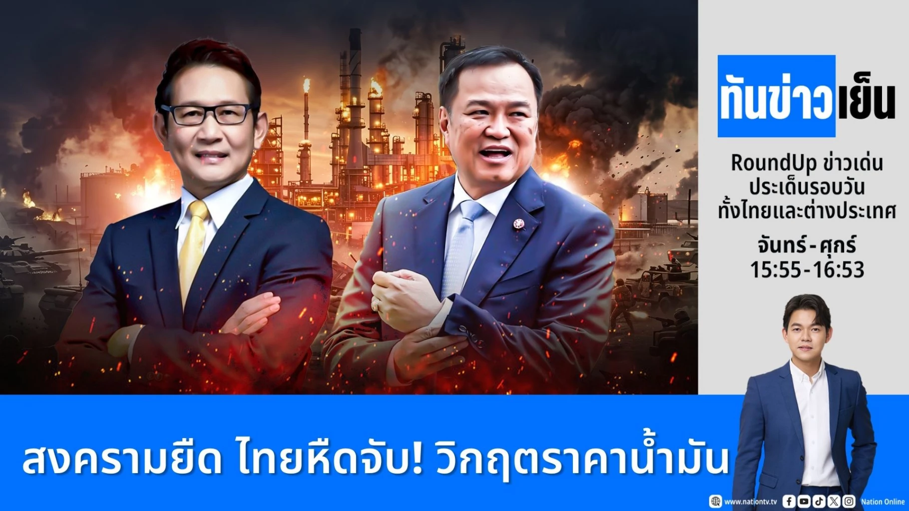 นายกฯ สั่ง "ราชการ-รัฐวิสาหกิจ" work from home ทันที รัฐมนตรีถอดสูท บอกช่วยชาติ ประหยัดไฟ ด้าน "อรรถพล" ชวนประชาชนหันมาเติม E20 แทน ถูกกว่า ประหยัดกว่า ย้ำประชาชนอย่าตื่นตระหนก น้ำมันไม่ขาดแคลน กางแผนรับมือวิกฤต ประเทศอื่น หลังสงครามส่อแววยืดเยื้อ