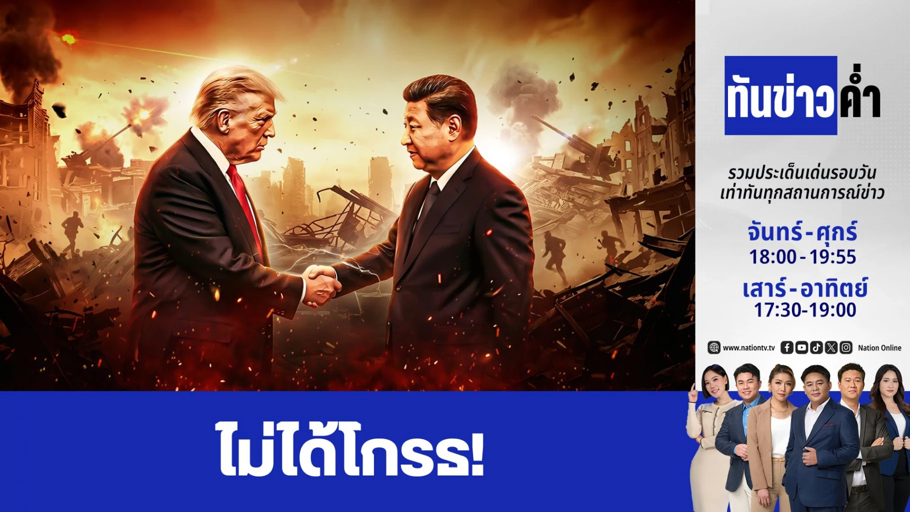 ปธน.ทรัมป์ ออกมาประกาศเลื่อนนัดที่จะพบกับ ปธน.สี จิ้นผิงของจีนช่วงสิ้นเดือนนี้ โดยอ้างว่ายังคงง่วนอยู่กับสงครามอิหร่าน ขณะที่จีนยังคงไม่ตอบรับส่งเรือรบช่วยสหรัฐฯ เปิดช่องแคบฮอร์มุซ ติดตามกับคุณกิตติดิษฐ์ค่ะ
