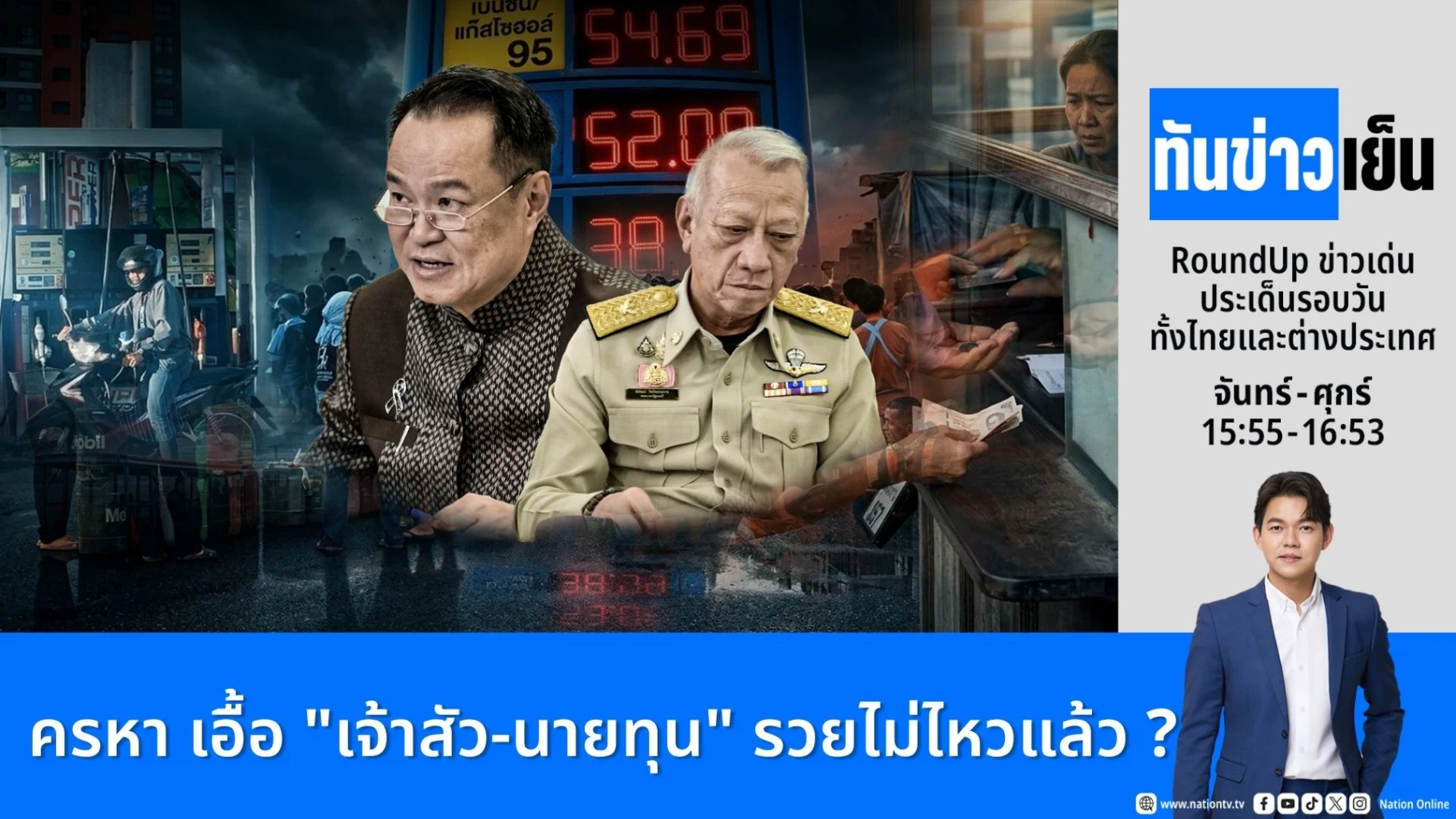 จับตาปมร้อนวิกฤตพลังงาน เขย่ารัฐบาลอนุทิน หลังถูกครหาเอื้อนายทุนเจ้าสัวพลังงาน ล่าสุดพิพัฒน์ รัชกิจประการ ยันไม่มีใครรู้ล่วงหน้า น้ำมันขึ้น 6 บาท ด้านโสภณ สุภาพงศ์ ผู้ก่อตั้งบางจาก จี้ อนุทิน ยึด 6.4 หมื่นล้านคืนจากผู้ค้าน้ำมัน ขณะที่นพ.วรงค์ เดชกิจวิกรม หัวหน้าพรรคไทยภักดี ชี้พิรุธส่วนต่างดีเซล เข้ากระเป๋าใคร