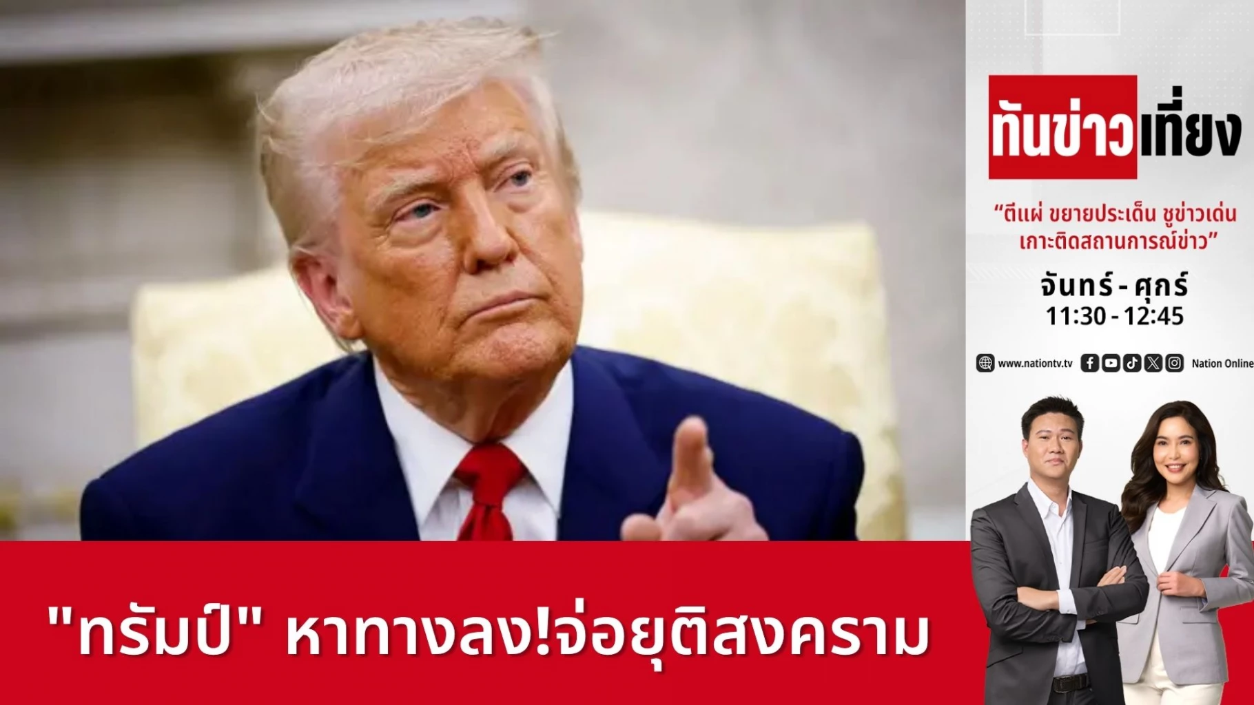 โดนัลด์ ทรัมป์ ประธานาธิบดีสหรัฐอเมริกาประกาศว่า สหรัฐฯ เตรียมยุติการโจมตีอิหร่านภายใน 2-3 สัปดาห์ ในขณะที่ อับบาส อารักชี รัฐมนตรีต่างประเทศของอิหร่านออกมาโต้แย้งว่าไม่มีการเจรจาใดๆ เกิดขึ้น และย้ำว่าโครงการนิวเคลียร์ของอิหร่าน ‘เป็นไปเพื่อสันติภาพ’ สำนักข่าวซีเอ็นบีซีรายงาน ทรัมป์เตรียมแถลงกับประชาชน อัพเดตข้อมูลสำคัญเรื่องอิหร่าน 21.00 น. วันพุธ (1 เม.ย.) ตามเวลาท้องถิ่น หรือ 8.00 น. วันพฤหัสบดี (2 เม.ย.) ตามเวลาประเทศไทย