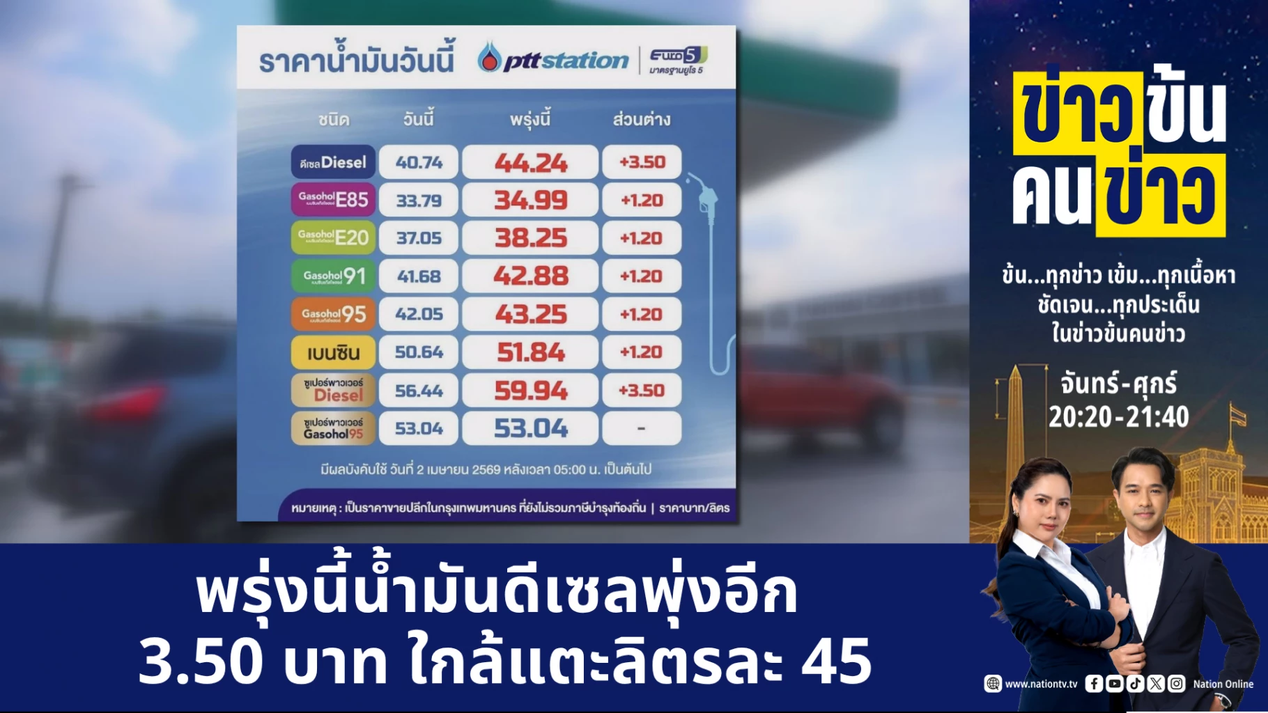 พรุ่งนี้น้ำมันดีเซลพุ่งอีก 3.50 บาท ใกล้แตะลิตรละ 45 | ข่าวข้นคนข่าว | 1 เม.ย. 69 | PART 1