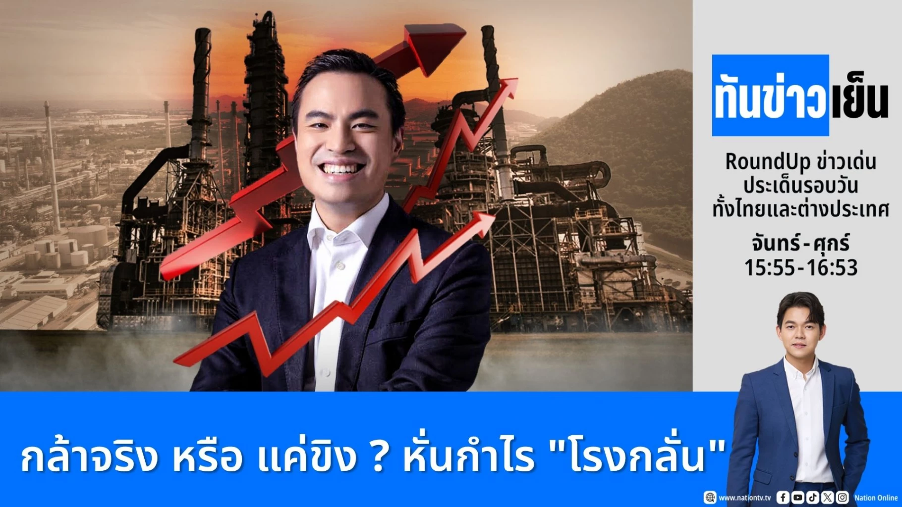 เอกนัฏ พร้อมพันธุ์ รัฐมนตรีว่าการกระทรวงพลังงาน ออกตัวแรงลุยรื้อโครงสร้างพลังงาน เรียก กบง.ถก 7 เมษายนนี้ ลดราคาน้ำมัน ด้านวีระยุทธ กาญจน์ชูฉัตร รองหัวหน้าพรรคประชาชน จี้รัฐบาลเก็บภาษีลาภลอย หลังค่าการกลั่นพุ่ง 14 บาท ขณะที่ม็อบบุกทำเนียบ จี้รัฐบาลแก้ปัญหาน้ำมันแพง ราคาสินค้าพุ่งฉุดไม่อยู่