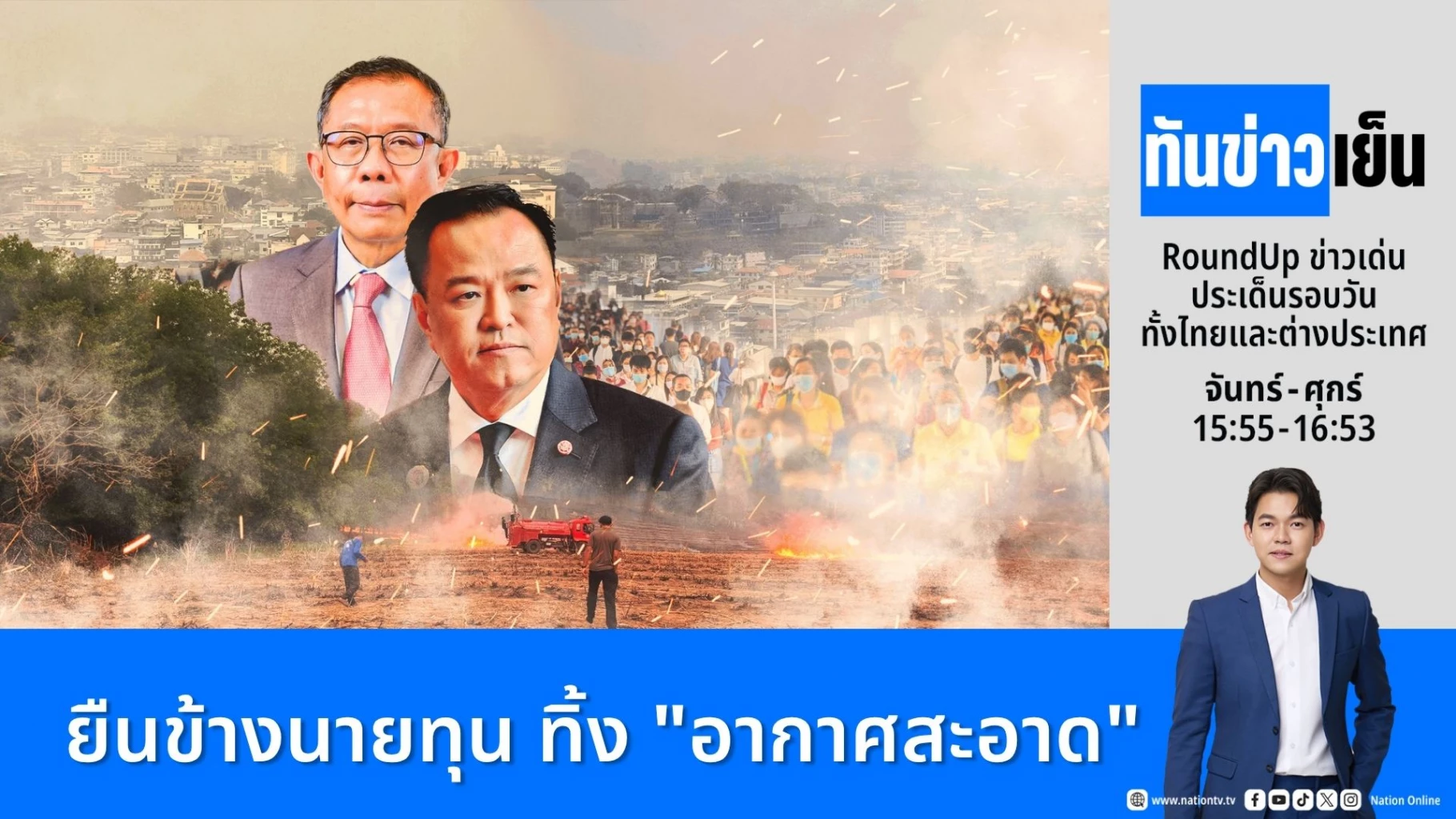 เชียงใหม่วิกฤตหนัก จมฝุ่นติดต่อกัน 9 วัน โรงพยาบาลเผยฝุ่นพิษ PM 2.5 กระตุ้นผู้ป่วยอาการรุนแรง 1.5 เท่า ด้านนายศุภชัย ใจสมุทร สส.บัญชีรายชื่อพรรคภูมิใจไทย ย้ำ พรบ.อากาศสะอาด เป็นภาระเอกชนมากเกินไปขณะที่ภาคประชาชน โต้ ภูมิใจไทย จะให้ทนอีกกี่ปี