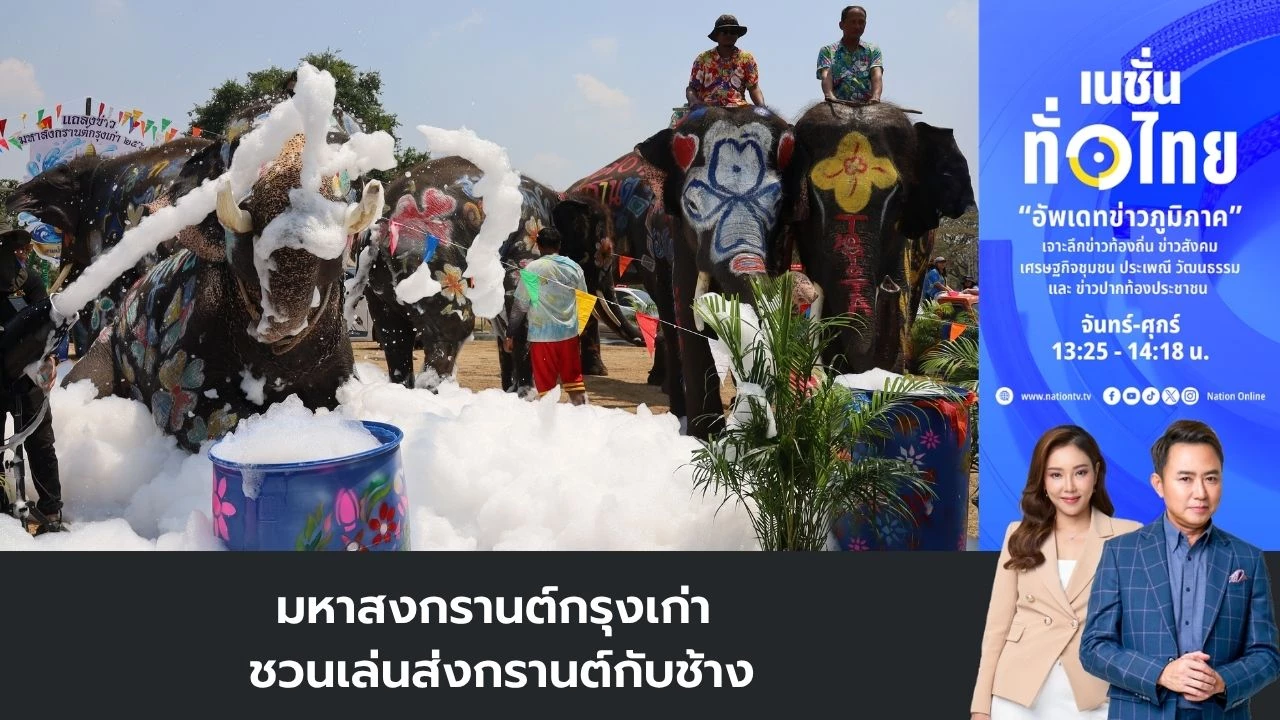 เทศบาลนครพระนครศรีอยุธยาเปิดตัว "อยุธยามหาสงกรานต์" สุดอลังการ นำขบวนรถสามล้อหน้ากบและกองทัพช้าง 10 เชือกจากวังช้างอยุธยา เพ้นท์ลายดอกโสนสวยงามออกมาเล่นสาดน้ำและปาร์ตี้โฟมกับนักท่องเที่ยวอย่างคึกคัก เพื่อเชิญชวนเที่ยวงานภายใต้แนวคิด "มหาสงกรานต์กรุงเก่า สายน้ำ ศรัทธา มรดกแห่งแผ่นดิน" ระหว่างวันที่ 13–15 เมษายน 2569 นี้ ไฮไลต์อยู่ที่วันที่ 13 เมษายน กับขบวนรถบุปผชาติกว่า 47 ขบวน และการสรงน้ำพระพุทธรูปศักดิ์สิทธิ์เพื่อความเป็นสิริมงคล