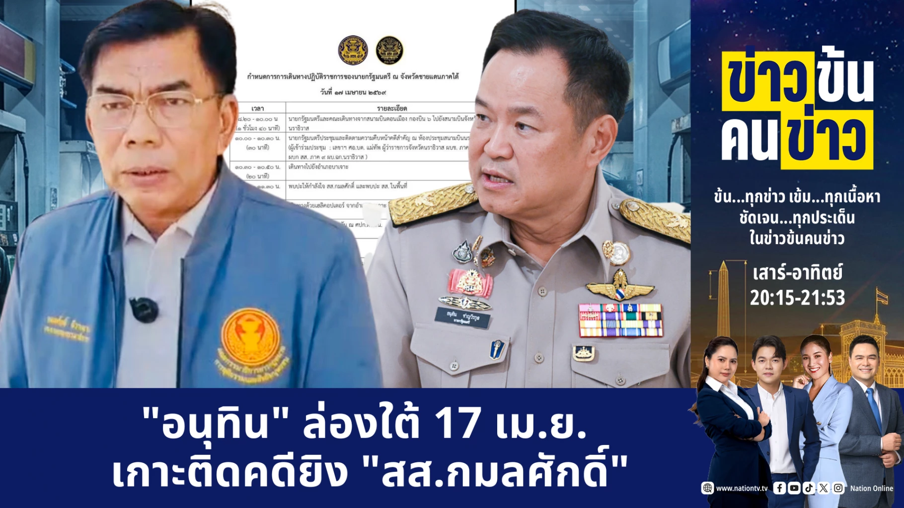 "อนุทิน" ล่องใต้ 17 เม.ย. เกาะติดคดียิง "สส.กมลศักดิ์" | ข่าวข้นคนข่าว | 12 เม.ย. 69 | PART 5